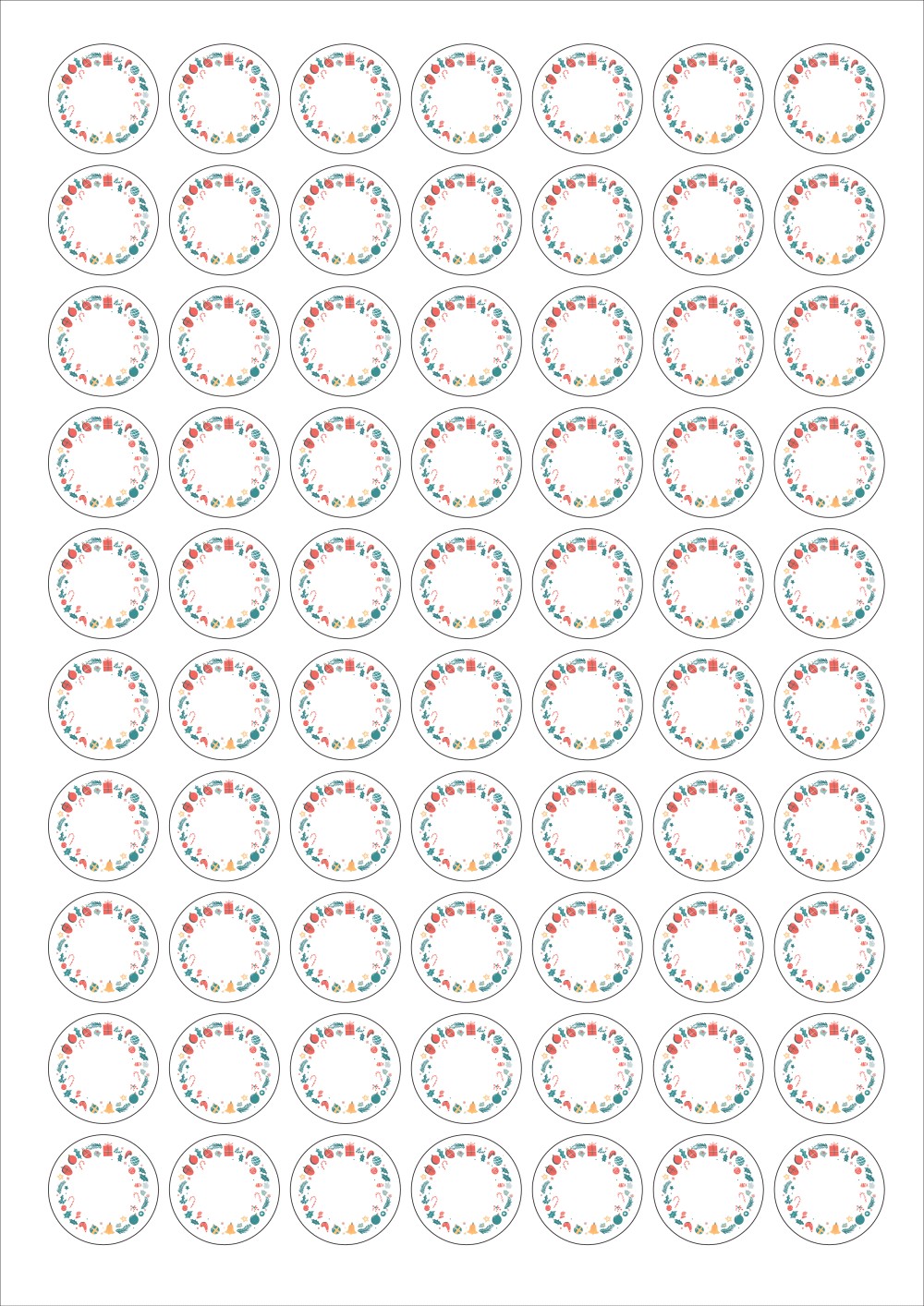 디자인된 A4 라벨지 출력용 라벨스티커, 규격코드: 570, 디자인코드: DA1456(welcome christmas!), Φ25 (mm) 원형