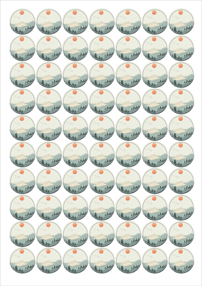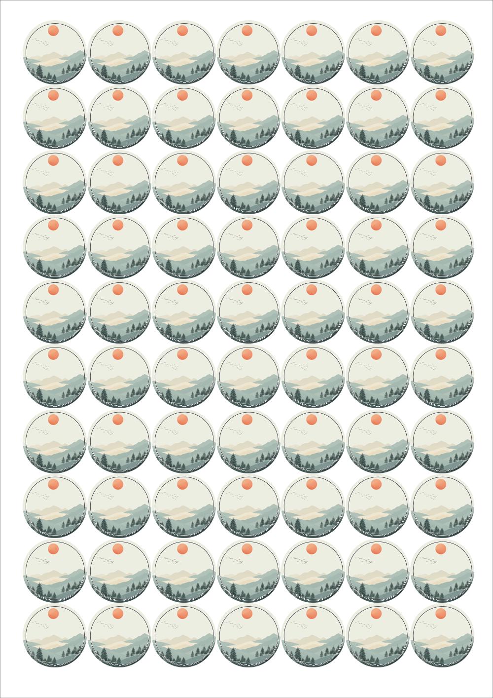 디자인된 A4 라벨지 출력용 라벨스티커, 규격코드: 570, 디자인코드: DA1574(희망을 품은 붉은 해처럼), Φ25 (mm) 원형