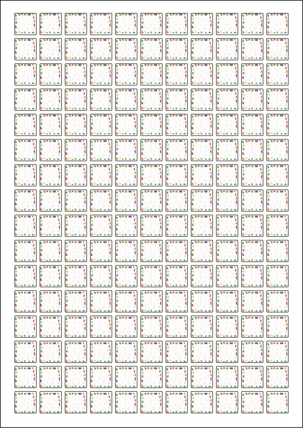 디자인된 A4 라벨지 출력용 라벨스티커, 규격코드: 576, 디자인코드: DA1376(건강한 야채 이야기), 15 x 15 (mm)