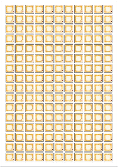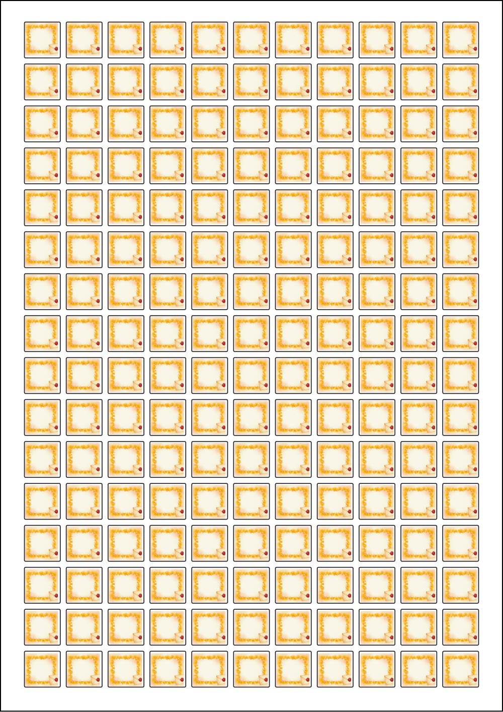 디자인된 A4 라벨지 출력용 라벨스티커, 규격코드: 576, 디자인코드: DA1426(은행잎 편지), 15 x 15 (mm)