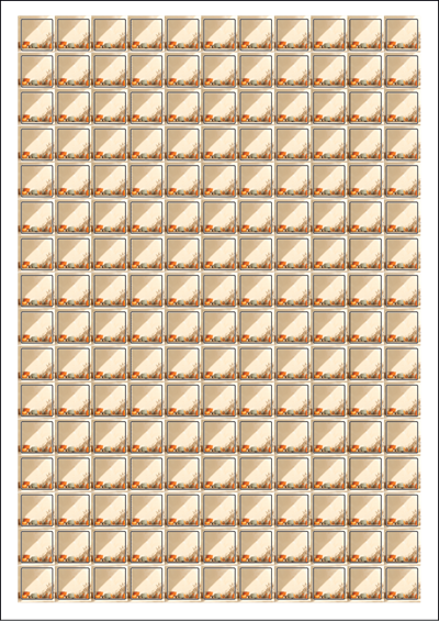 디자인된 A4 라벨지 출력용 라벨스티커, 규격코드: 576, 디자인코드: DA1435(평온한 가을날의 하루), 15 x 15 (mm)