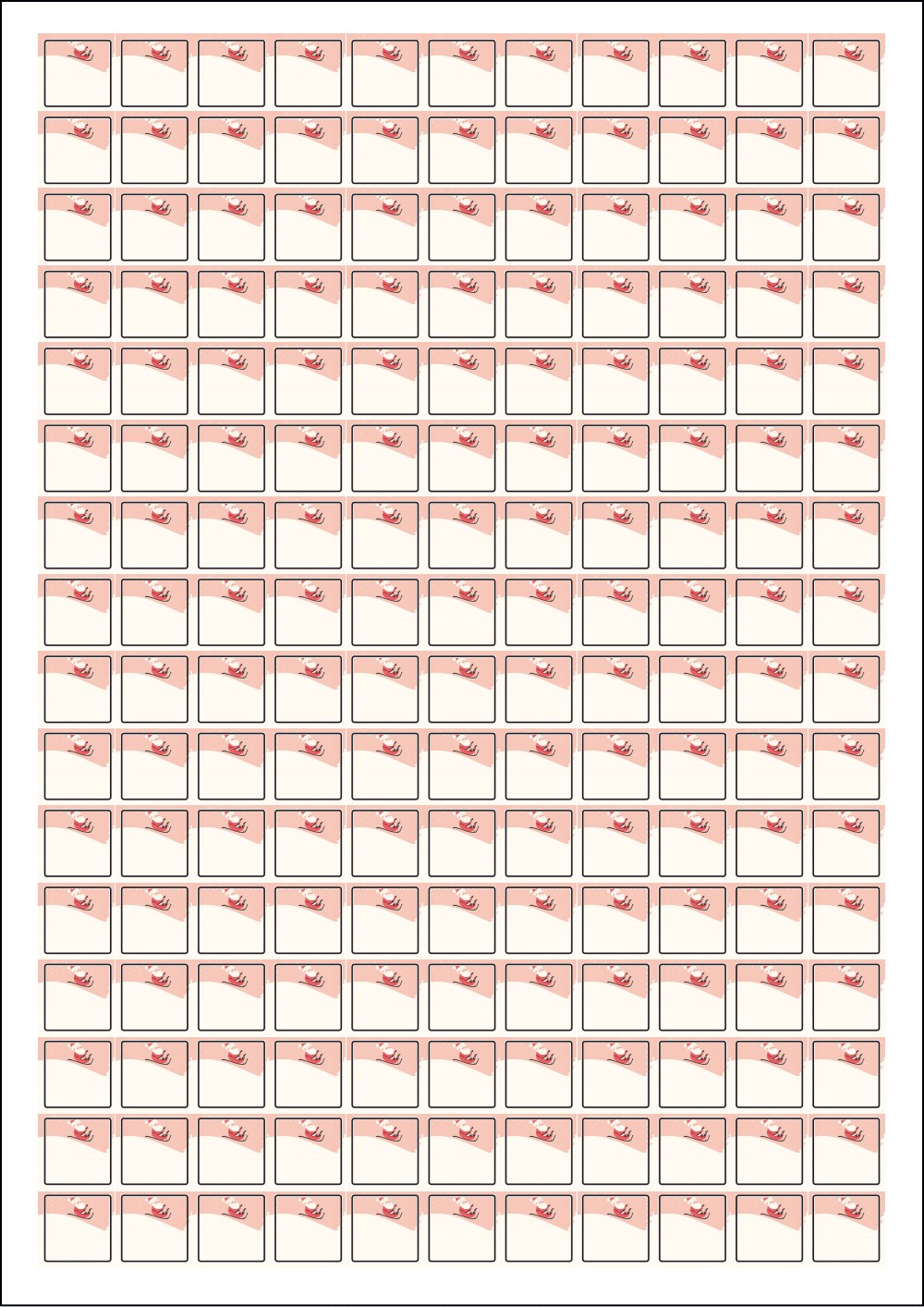 디자인된 A4 라벨지 출력용 라벨스티커, 규격코드: 576, 디자인코드: DA1482(산타 신난다), 15 x 15 (mm)