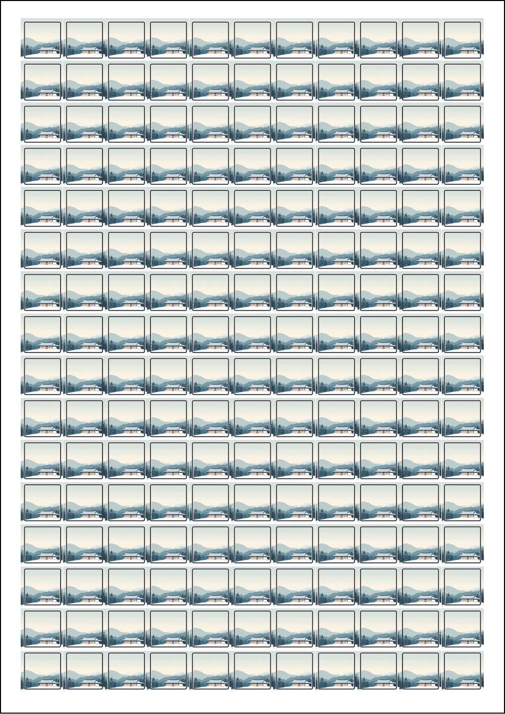 디자인된 A4 라벨지 출력용 라벨스티커, 규격코드: 576, 디자인코드: DA1576(고요한 마음과 다정한 인사), 15 x 15 (mm)