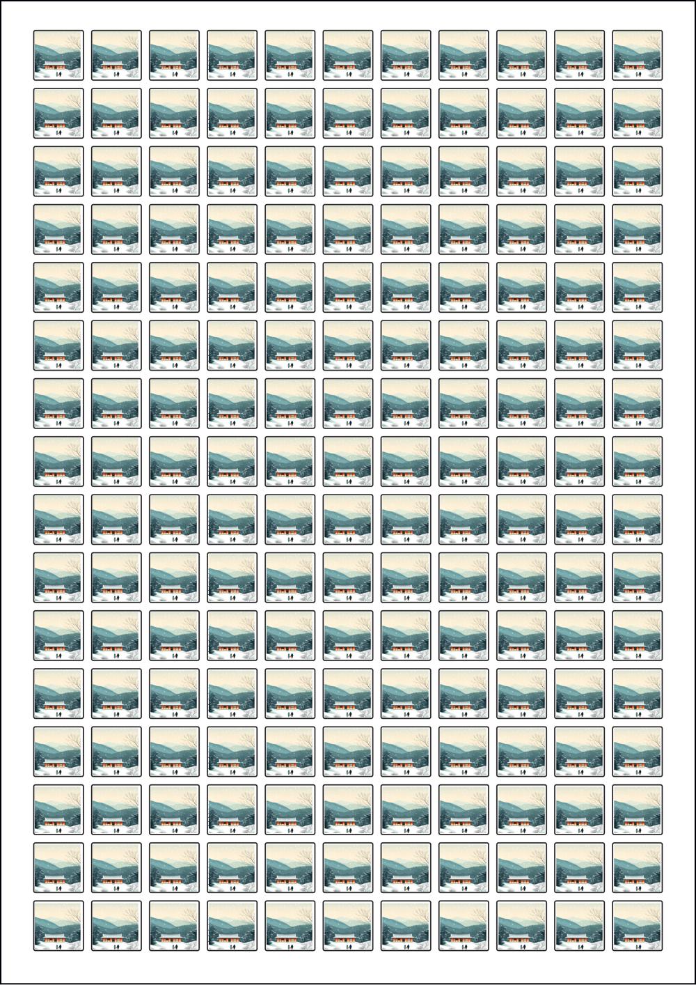 디자인된 A4 라벨지 출력용 라벨스티커, 규격코드: 576, 디자인코드: DA1577(귀향, 눈내리는 설날), 15 x 15 (mm)