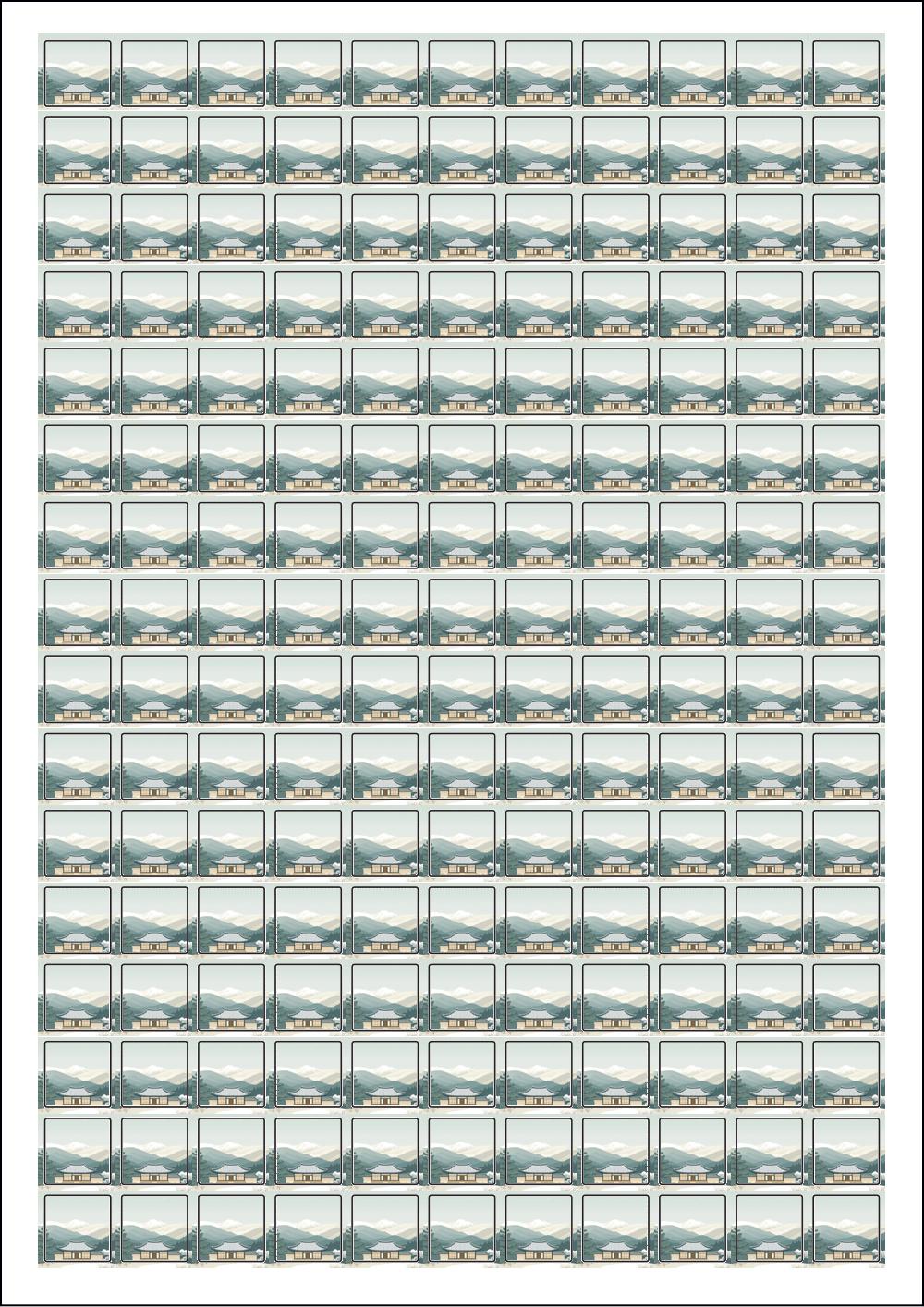 디자인된 A4 라벨지 출력용 라벨스티커, 규격코드: 576, 디자인코드: DA1578(고요한 설날의 아침), 15 x 15 (mm)