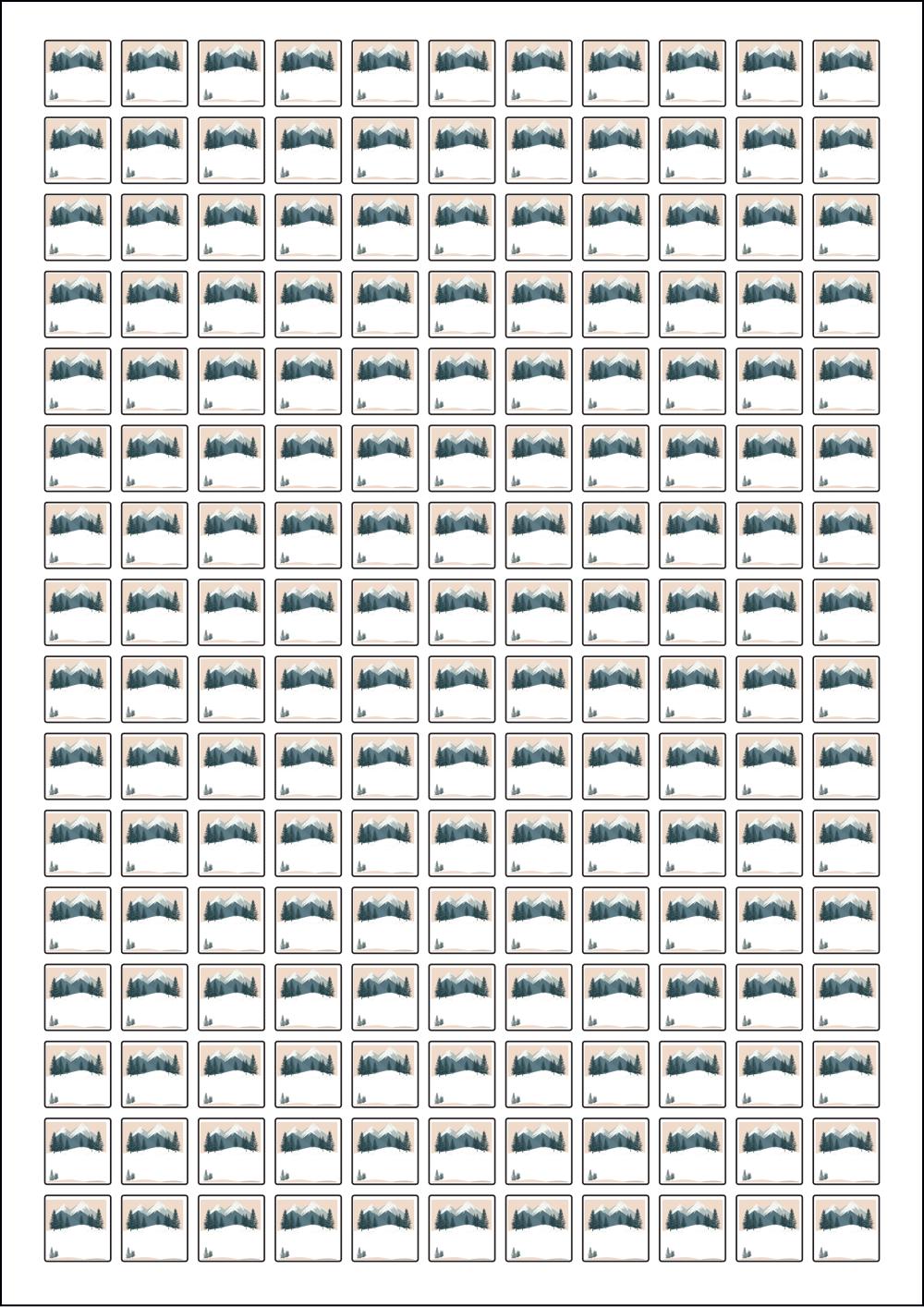 디자인된 A4 라벨지 출력용 라벨스티커, 규격코드: 576, 디자인코드: DA1582(저 잘지내요~ 겨울산에 인사), 15 x 15 (mm)