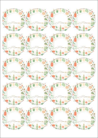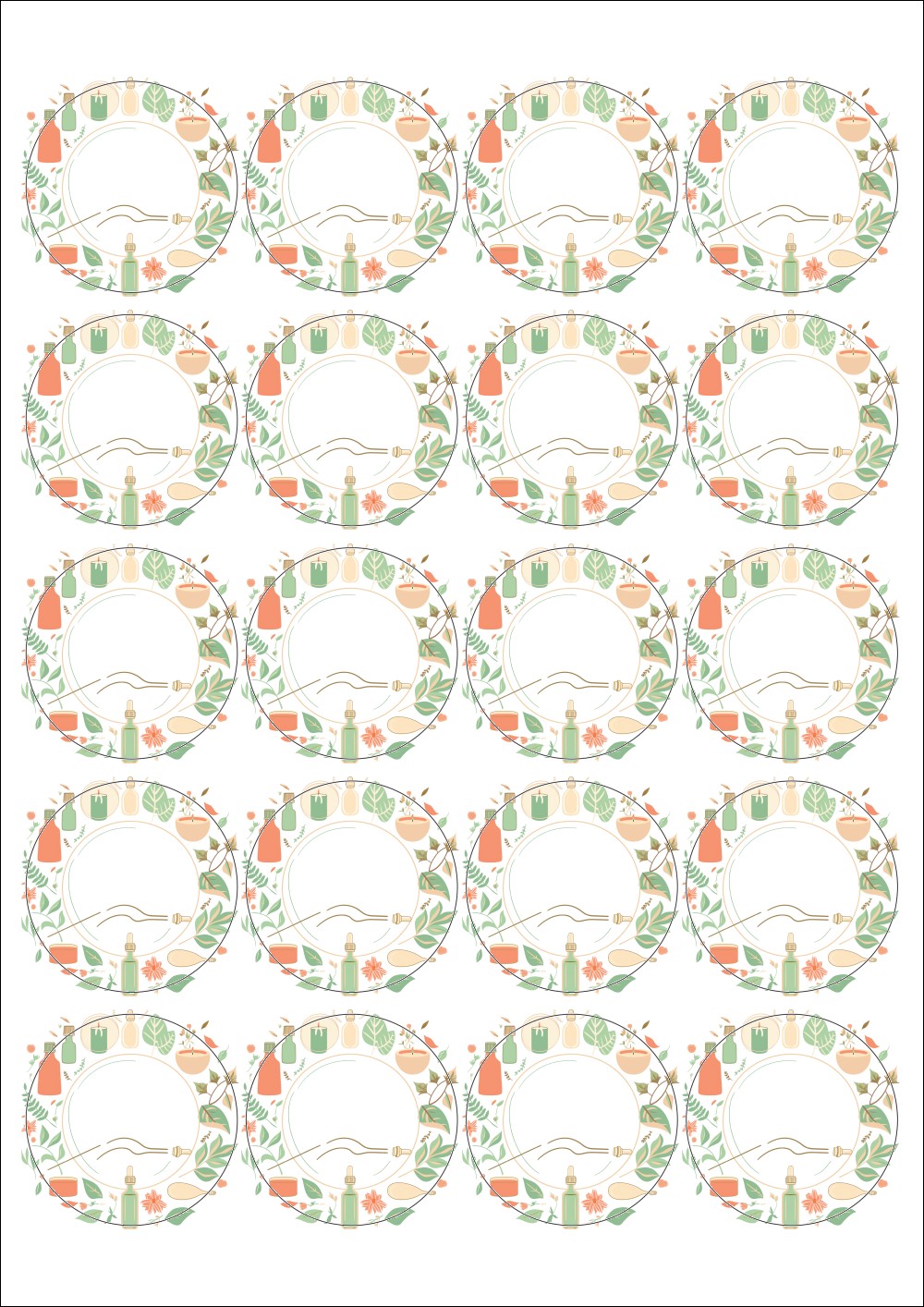 디자인된 A4 라벨지 출력용 라벨스티커, 규격코드: 580, 디자인코드: DA1407(아로마 프레임), Φ48 (mm) 원형