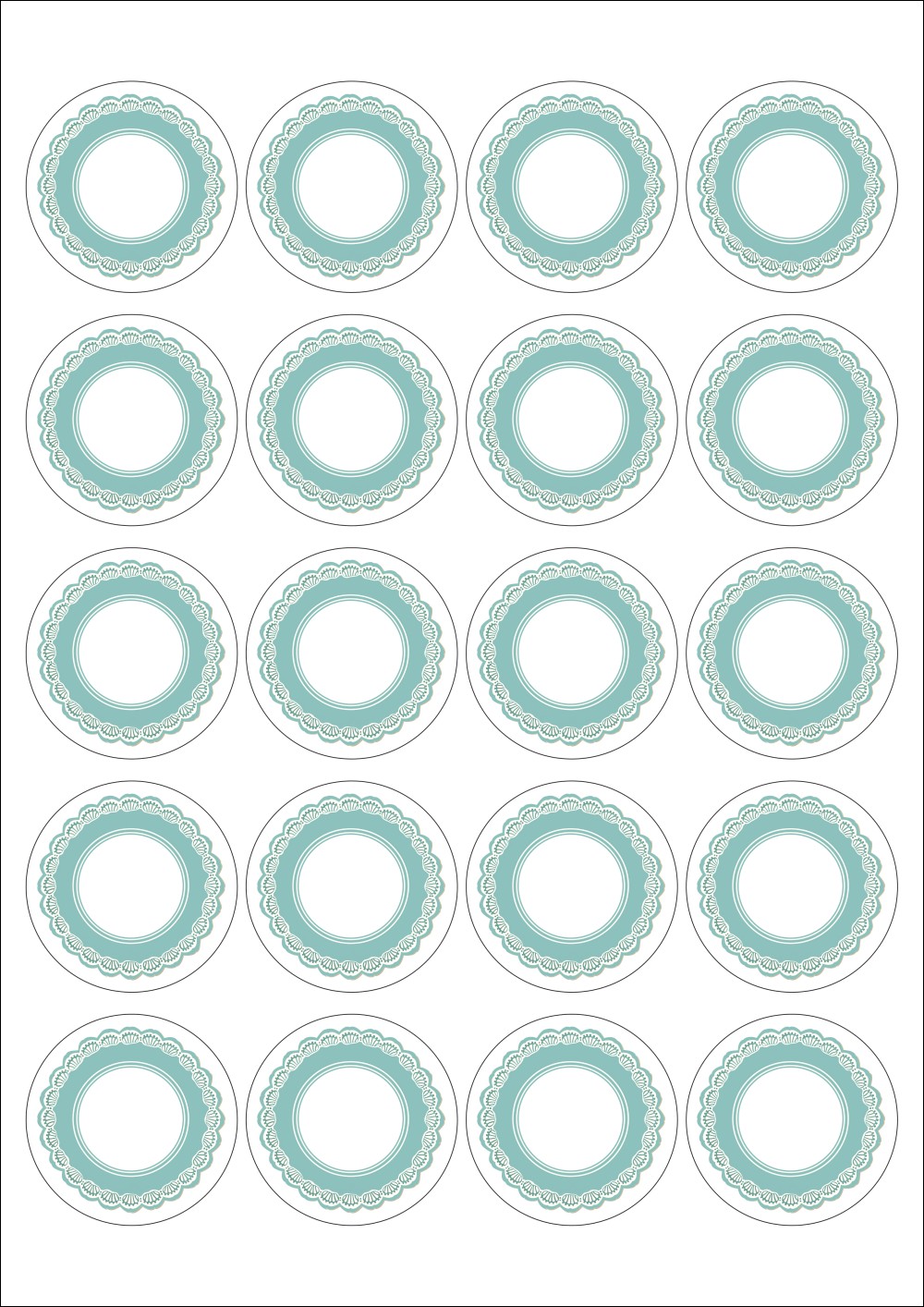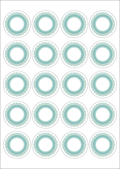 디자인된 A4 라벨지 출력용 라벨스티커, 규격코드: 580, 디자인코드: DA1419(민트레이스), Φ48 (mm) 원형