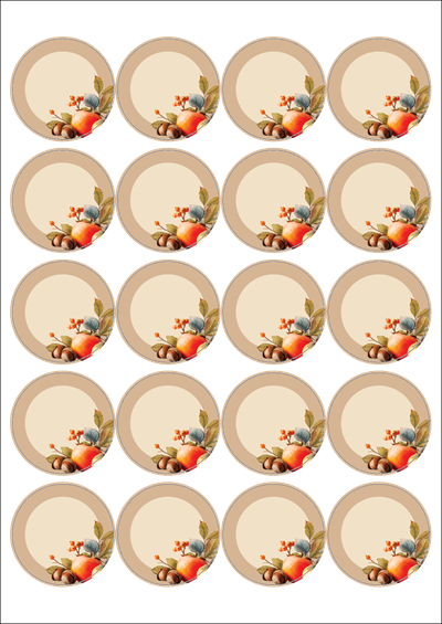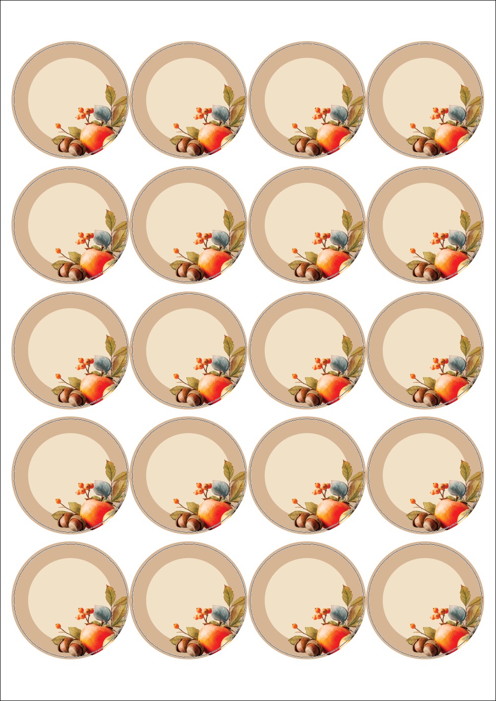 디자인된 A4 라벨지 출력용 라벨스티커, 규격코드: 580, 디자인코드: DA1452(수확의 계절, 감사의 마음을 담아서), Φ48 (mm) 원형