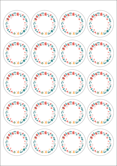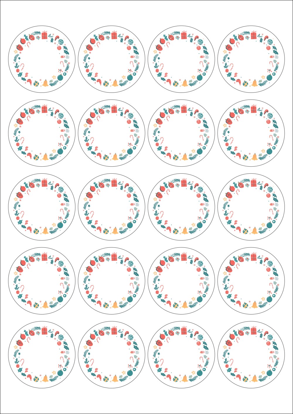 디자인된 A4 라벨지 출력용 라벨스티커, 규격코드: 580, 디자인코드: DA1456(welcome christmas!), Φ48 (mm) 원형