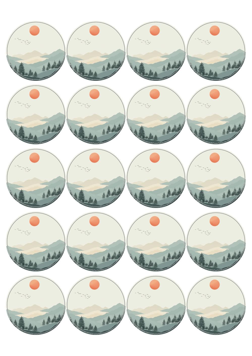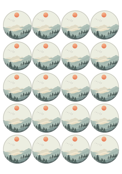 디자인된 A4 라벨지 출력용 라벨스티커, 규격코드: 580, 디자인코드: DA1574(희망을 품은 붉은 해처럼), Φ48 (mm) 원형