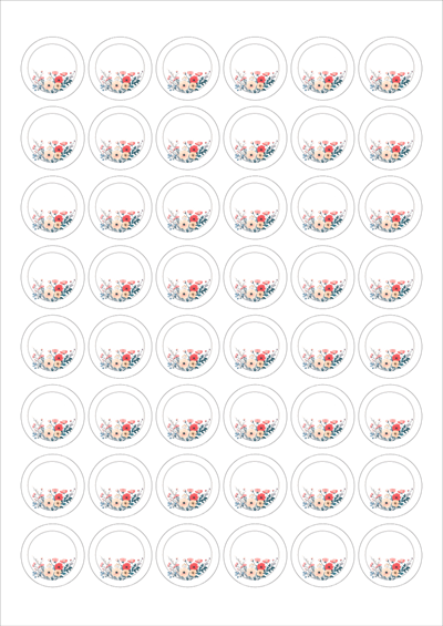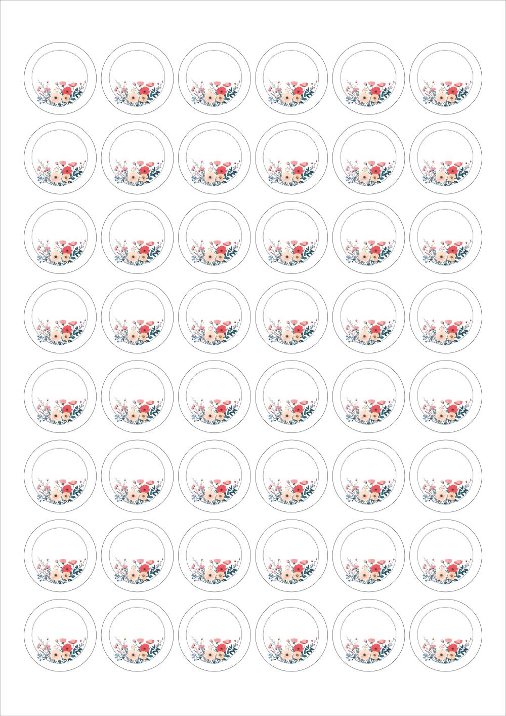 디자인된 A4 라벨지 출력용 라벨스티커, 규격코드: 586, 디자인코드: DA1361(플라워 프레임), Φ30 (mm) 원형