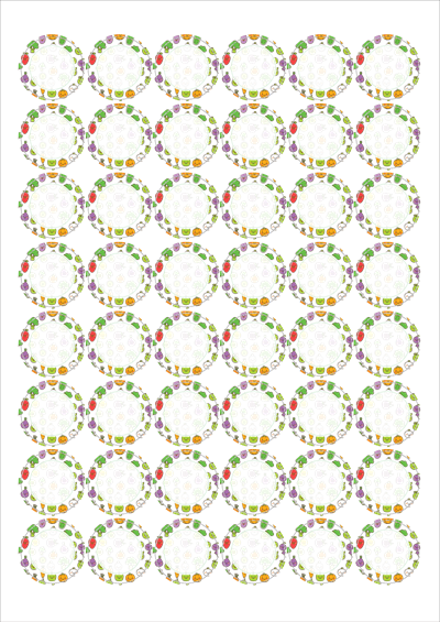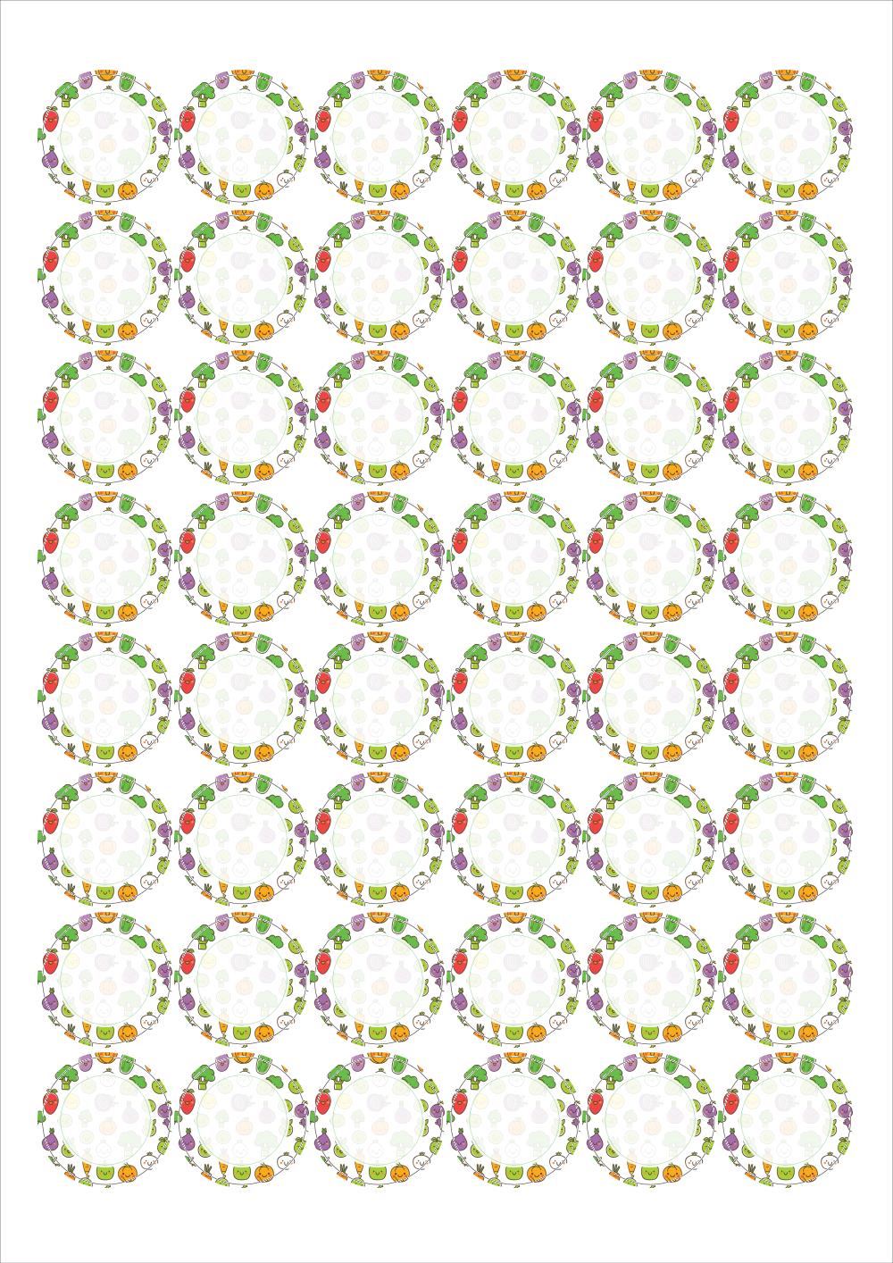 디자인된 A4 라벨지 출력용 라벨스티커, 규격코드: 586, 디자인코드: DA1377(건강한 야채 이야기), Φ30 (mm) 원형