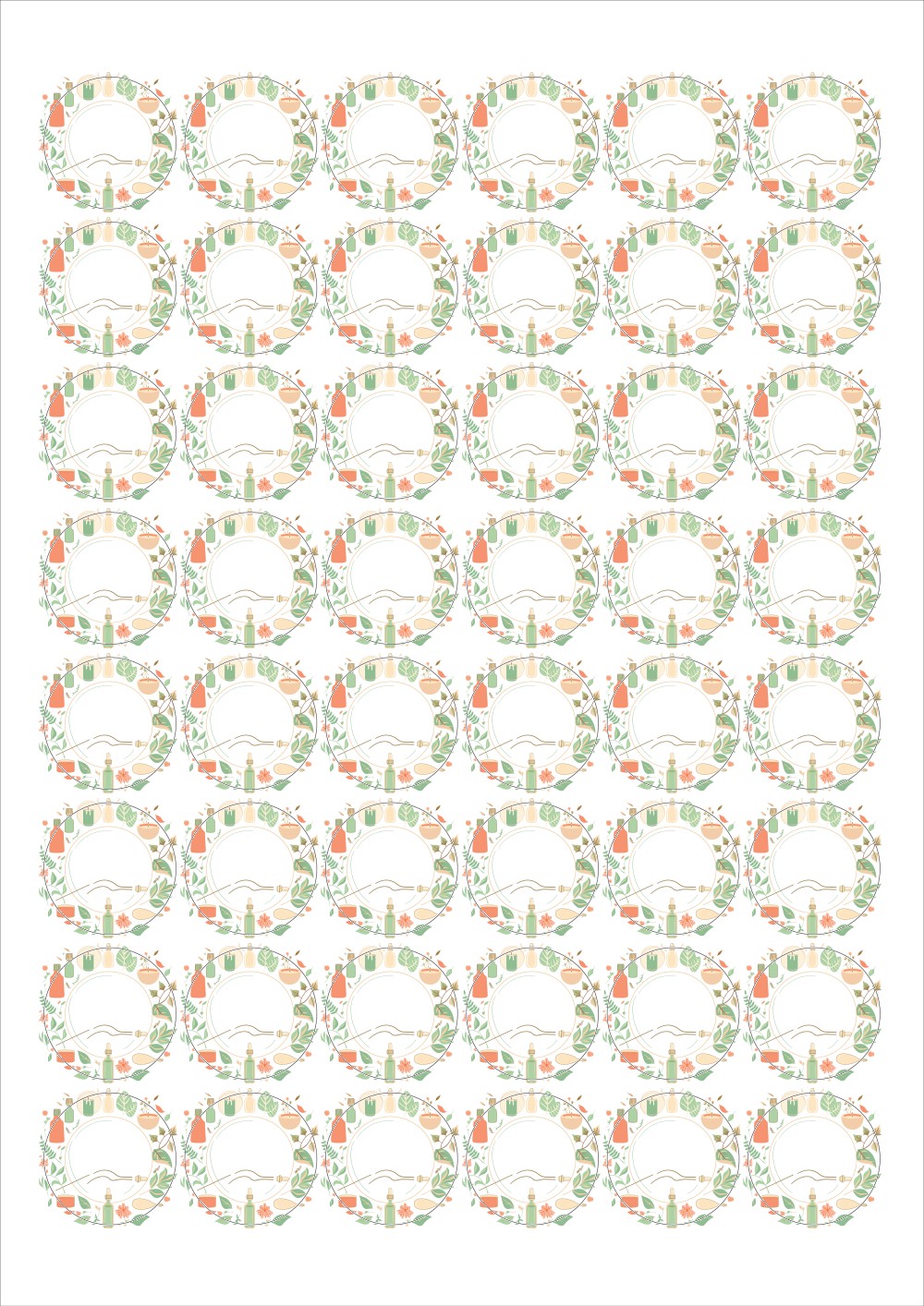 디자인된 A4 라벨지 출력용 라벨스티커, 규격코드: 586, 디자인코드: DA1407(아로마 프레임), Φ30 (mm) 원형