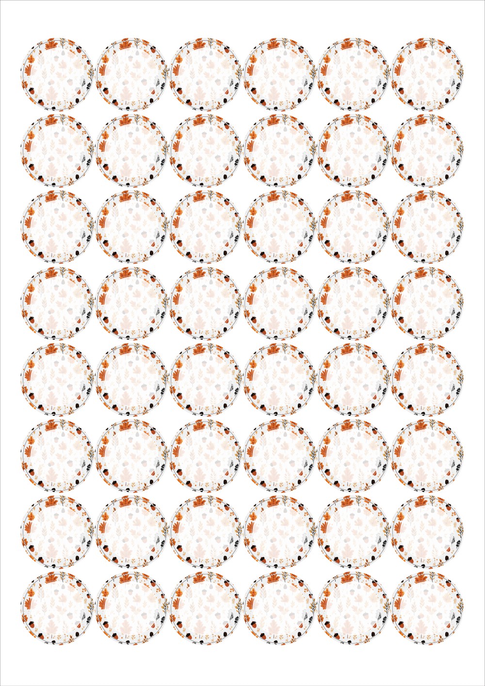 디자인된 A4 라벨지 출력용 라벨스티커, 규격코드: 586, 디자인코드: DA1442(가을 메세지 프레임 1), Φ30 (mm) 원형