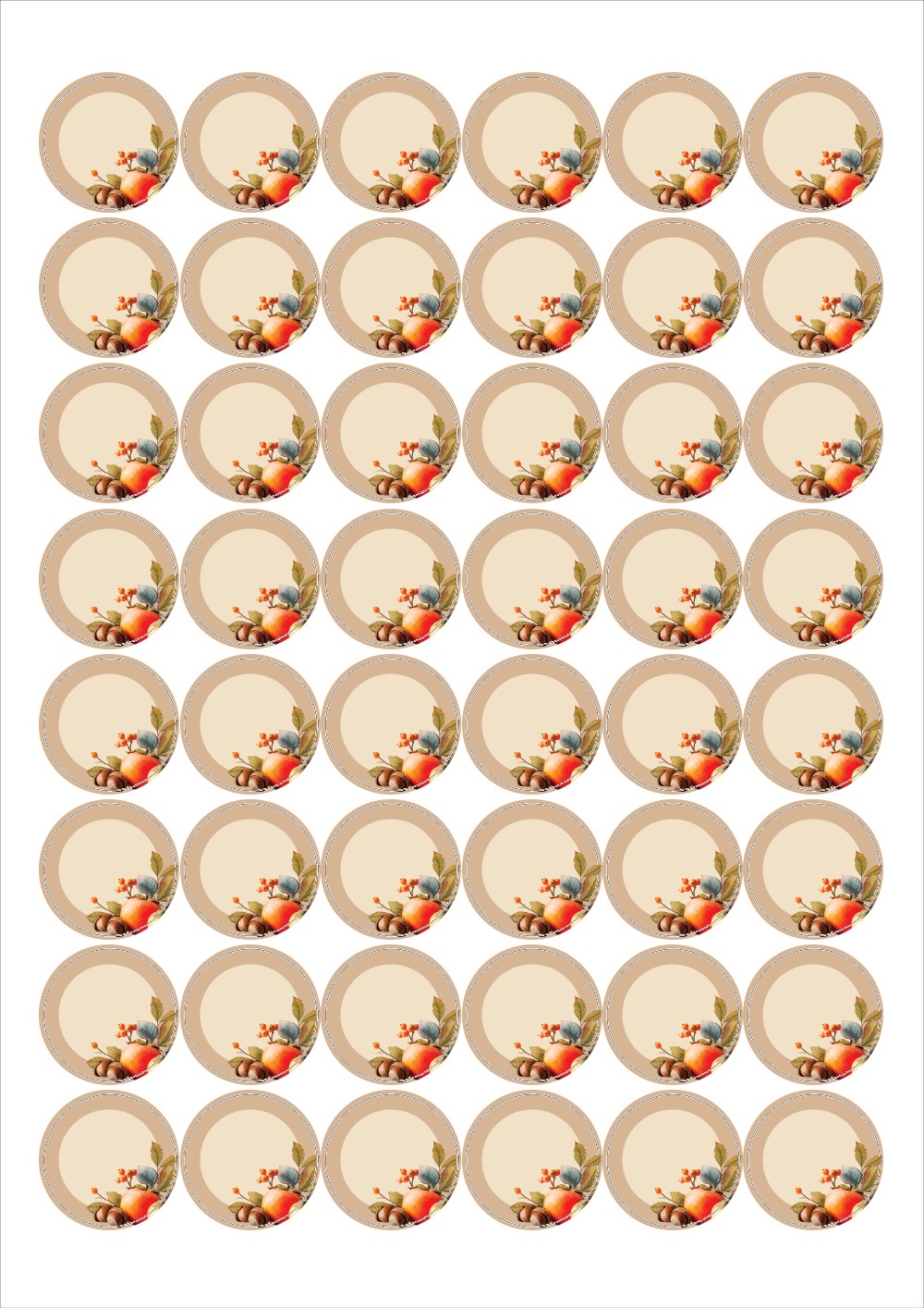 디자인된 A4 라벨지 출력용 라벨스티커, 규격코드: 586, 디자인코드: DA1452(수확의 계절, 감사의 마음을 담아서), Φ30 (mm) 원형