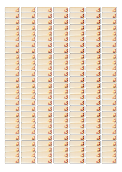 디자인된 A4 라벨지 출력용 라벨스티커, 규격코드: 589, 디자인코드: DA1450(맛있는 베이커리), 25.4 x 10.02 (mm)
