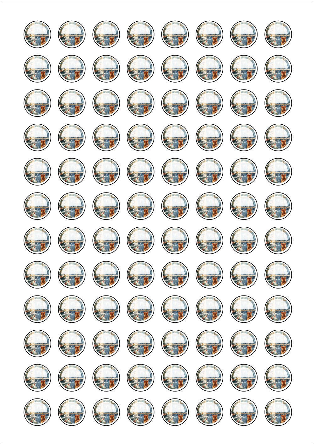 디자인된 A4 라벨지 출력용 라벨스티커, 규격코드: 596, 디자인코드: DA1496(메리크리스마스냥!), Φ18 (mm) 원형