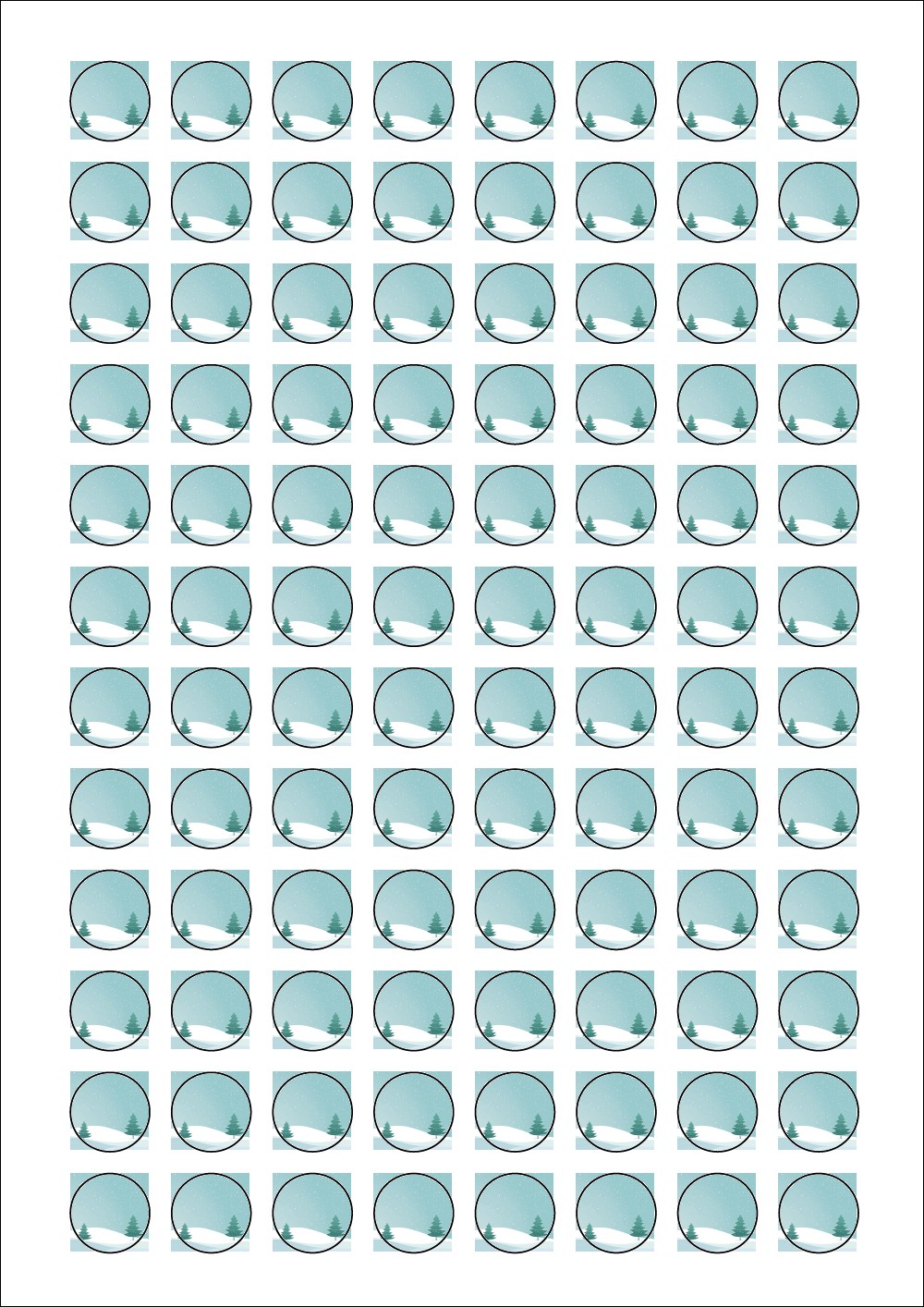 디자인된 A4 라벨지 출력용 라벨스티커, 규격코드: 596, 디자인코드: DA1500(메리크리스마스 미스터 심플), Φ18 (mm) 원형
