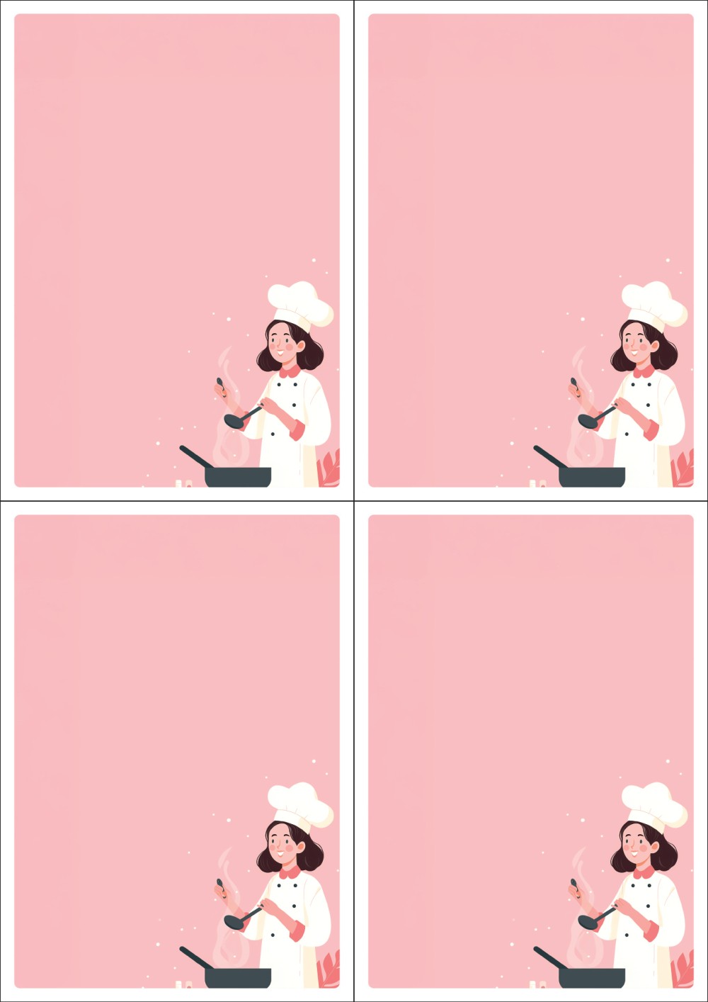 디자인된 A4 라벨지 출력용 라벨스티커, 규격코드: 604, 디자인코드: DA1434(요리교실 오픈했어요), 105 x 148.5 (mm)