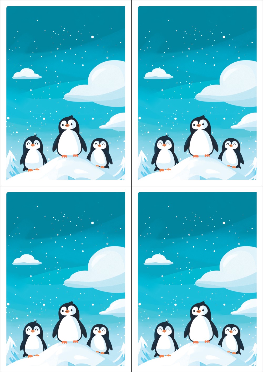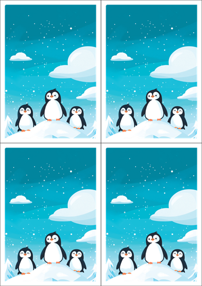 디자인된 A4 라벨지 출력용 라벨스티커, 규격코드: 604, 디자인코드: DA1468(반가워요. 귀여운 펭귄 친구들~), 105 x 148.5 (mm)