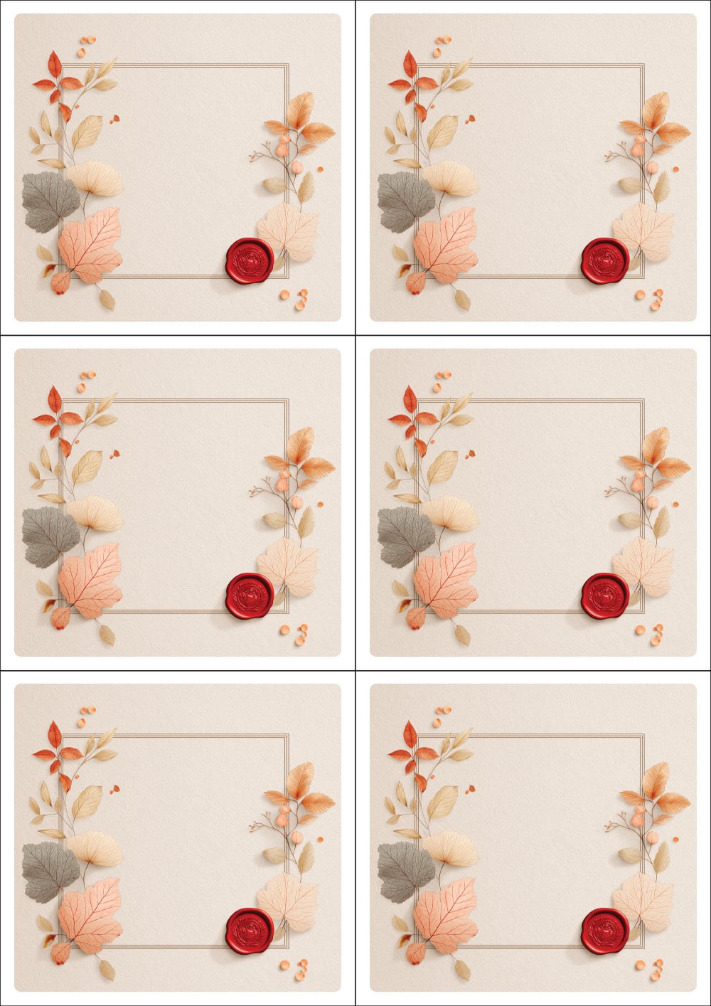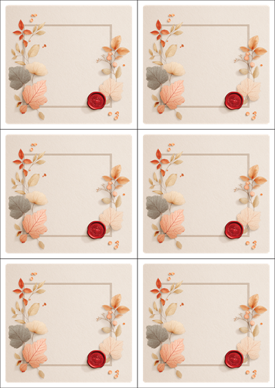 디자인된 A4 라벨지 출력용 라벨스티커, 규격코드: 606, 디자인코드: DA1429(가을날의 메세지2), 105 x 99 (mm)