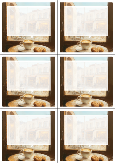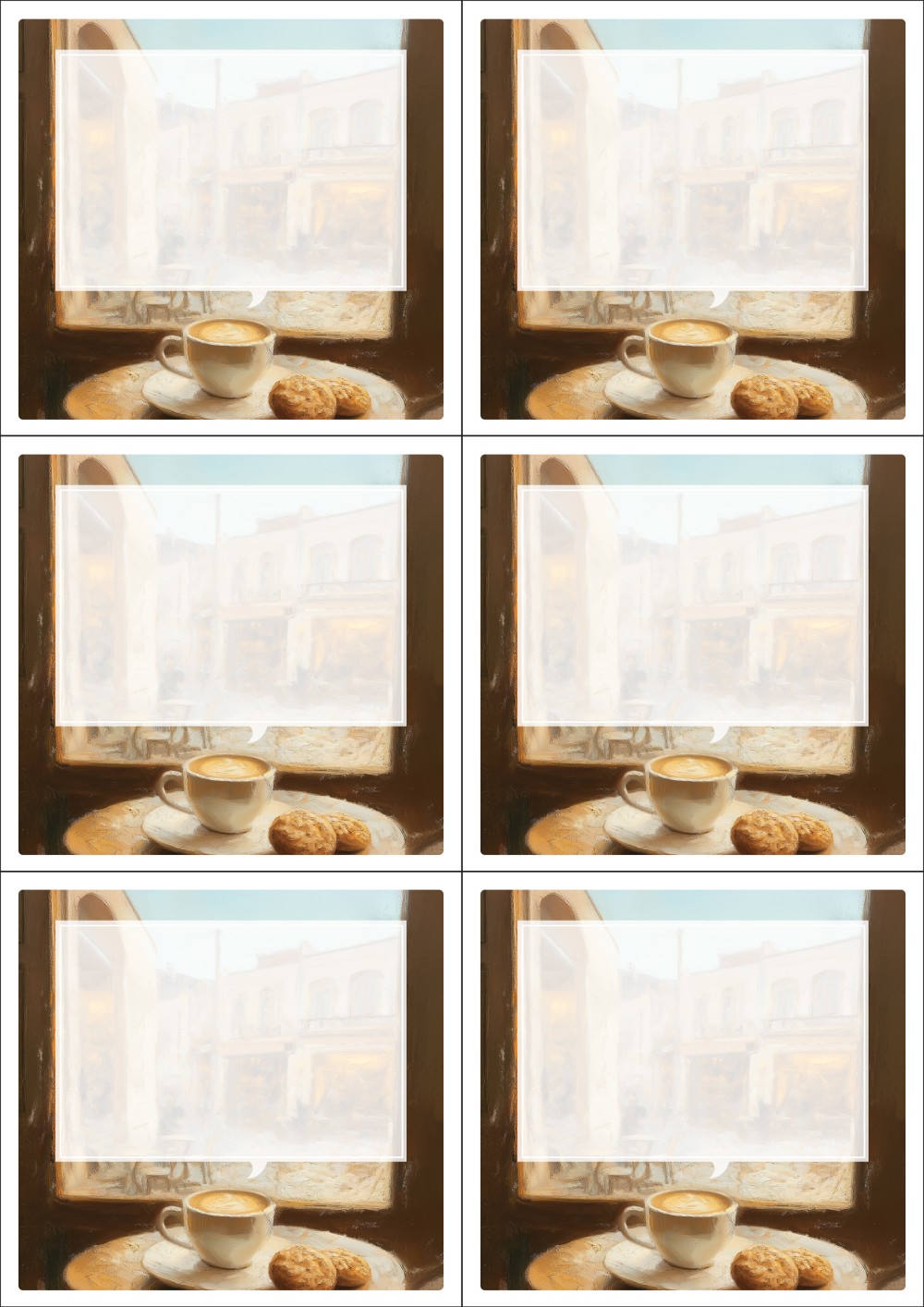디자인된 A4 라벨지 출력용 라벨스티커, 규격코드: 606, 디자인코드: DA1479(레트로 감성 카페에서), 105 x 99 (mm)