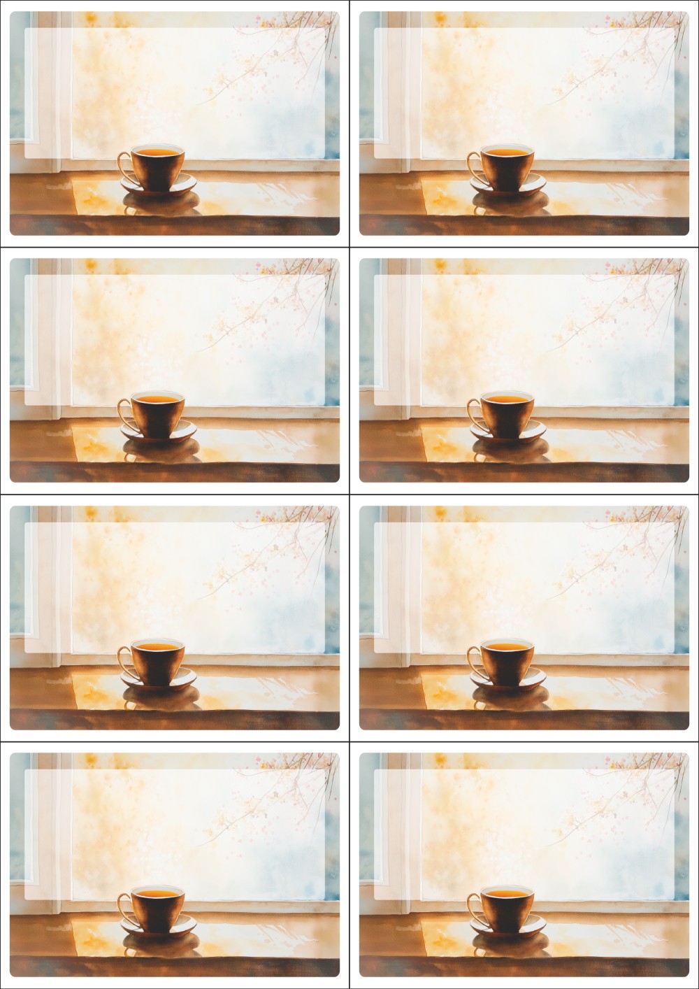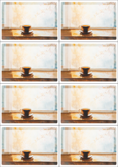 디자인된 A4 라벨지 출력용 라벨스티커, 규격코드: 608, 디자인코드: DA1425(가을날의 카페 창가에서), 105 x 74.25 (mm)