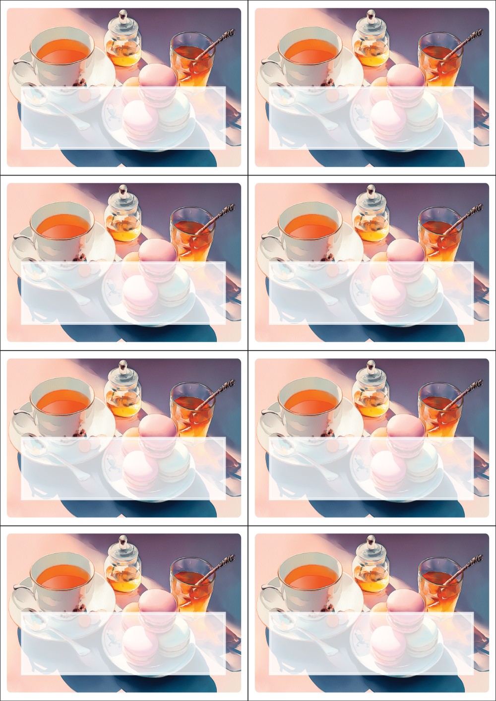 텍스트, 이미지, 도형, 바코드 등을 쉽게 출력 할 수 있으며 엑셀파일 등의 연동도 가능합니다. 라벨 모양대로 이미 칼선이 있기 때문에 출력 후 바로 떼어서 사용 하시면 됩니다.