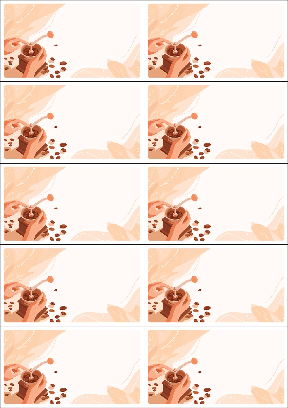 디자인된 A4 라벨지 출력용 라벨스티커, 규격코드: 610, 디자인코드: DA1411(향긋한 커피타임), 105 x 59.4 (mm)