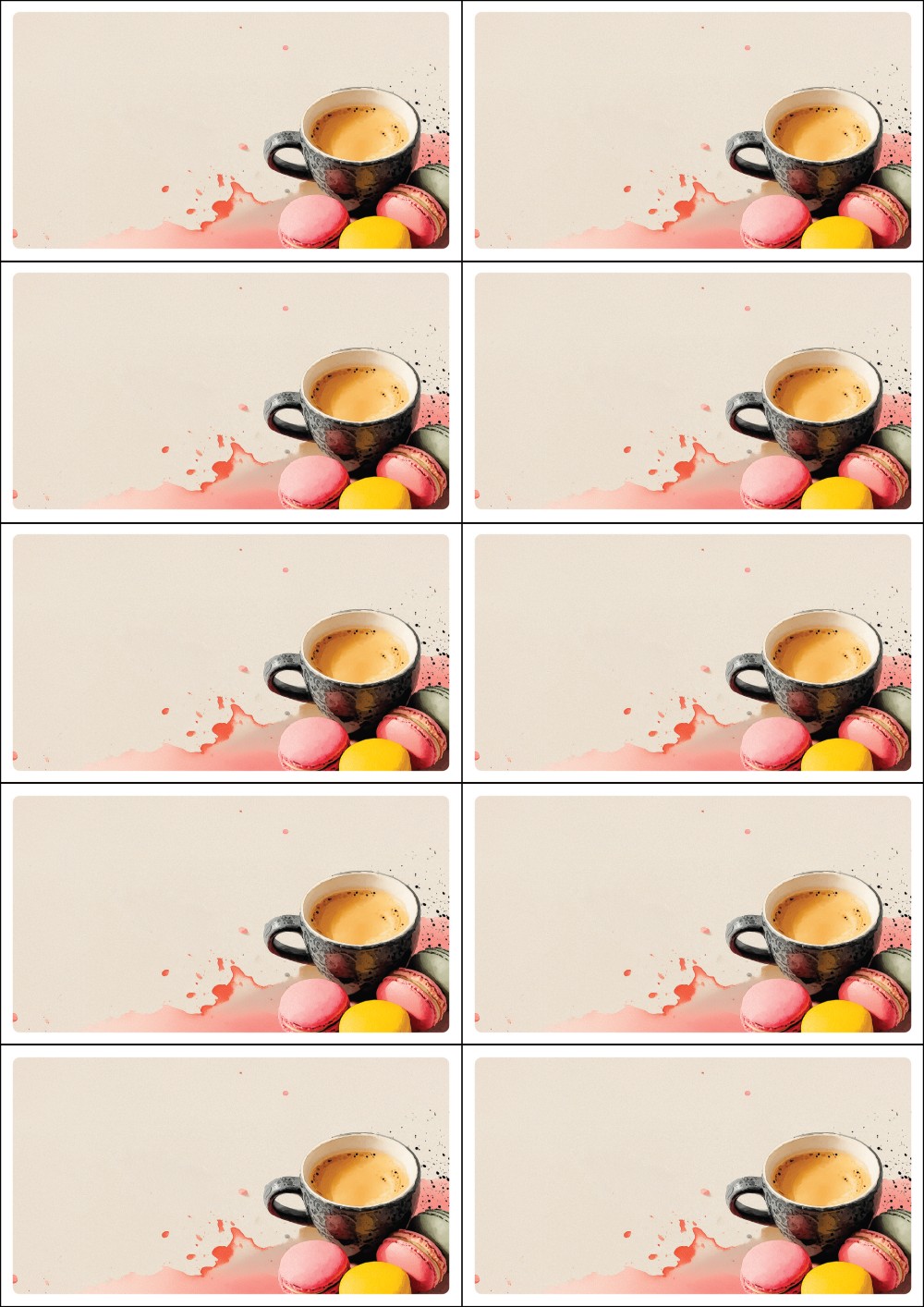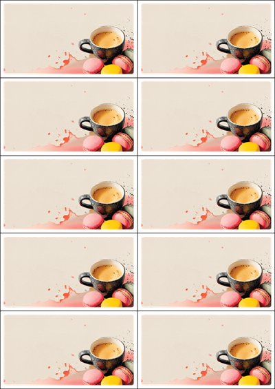 디자인된 A4 라벨지 출력용 라벨스티커, 규격코드: 610, 디자인코드: DA1445(차와 함께하는 즐거운 힐링타임), 105 x 59.4 (mm)