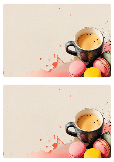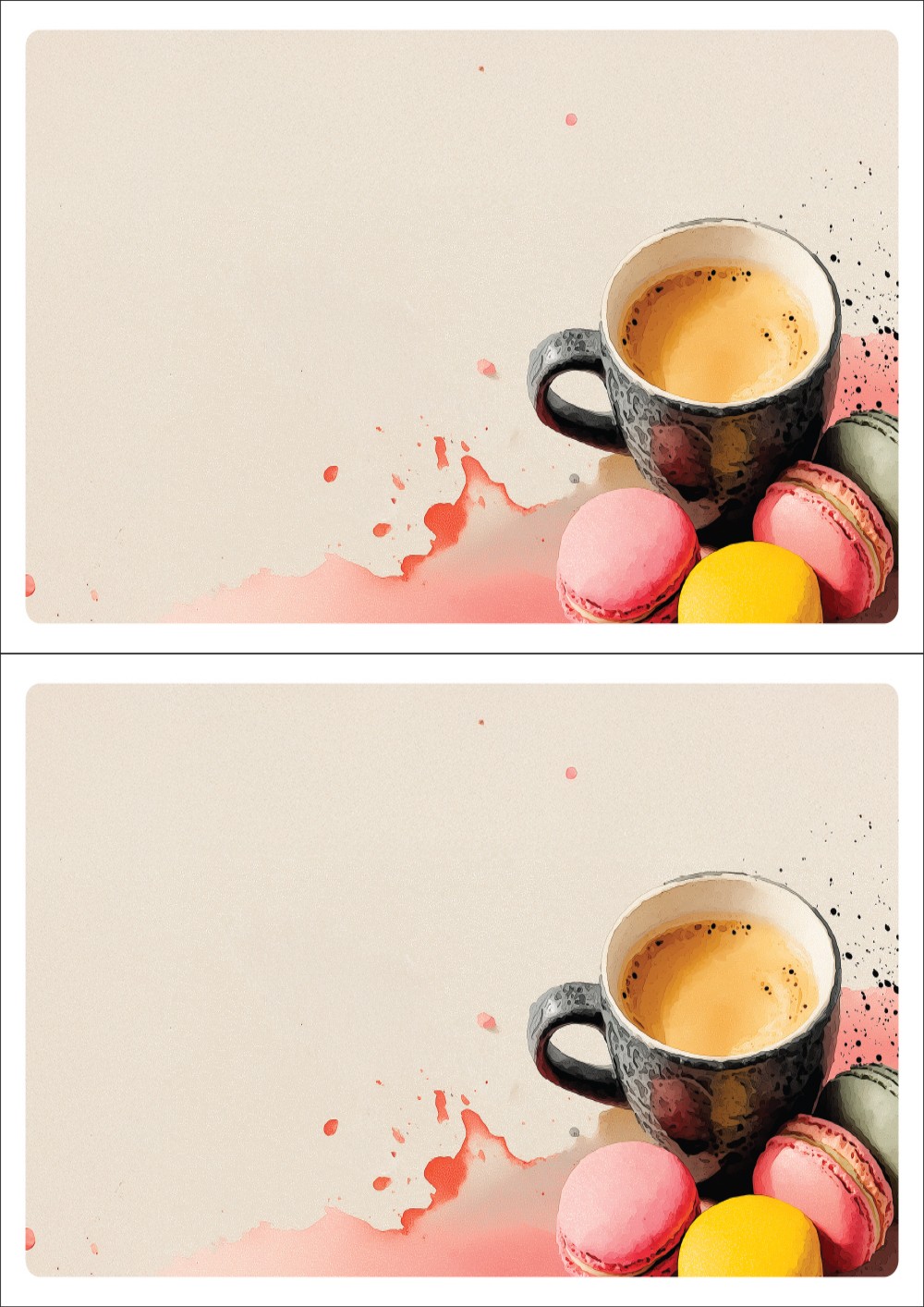 디자인된 A4 라벨지 출력용 라벨스티커, 규격코드: 612, 디자인코드: DA1445(차와 함께하는 즐거운 힐링타임), 210 x 148.5 (mm)