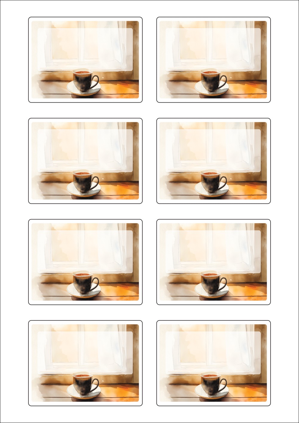 디자인된 A4 라벨지 출력용 라벨스티커, 규격코드: 624, 디자인코드: DA1424(따뜻한 차 한잔 하세요), 80 x 60 (mm)