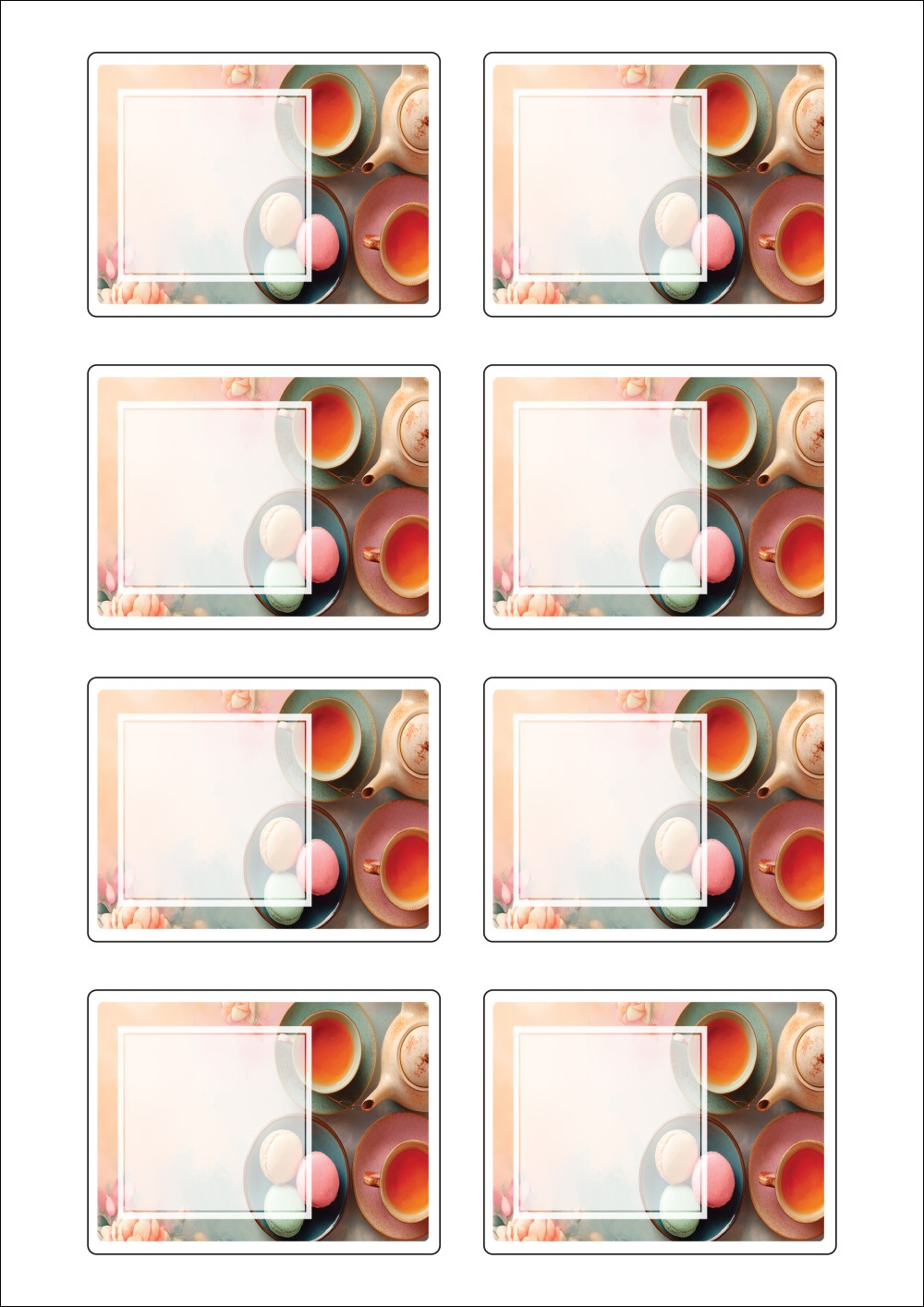 디자인된 A4 라벨지 출력용 라벨스티커, 규격코드: 624, 디자인코드: DA1431(향긋한 아침에), 80 x 60 (mm)
