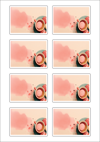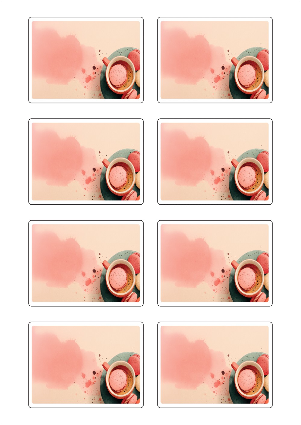 디자인된 A4 라벨지 출력용 라벨스티커, 규격코드: 624, 디자인코드: DA1444(마카롱 휴식타임), 80 x 60 (mm)