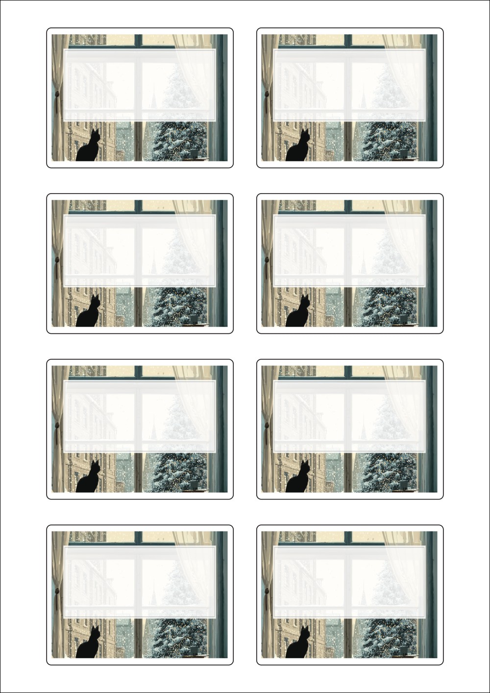 디자인된 A4 라벨지 출력용 라벨스티커, 규격코드: 624, 디자인코드: DA1494(오후엔 눈 그리고, 고양이), 80 x 60 (mm)
