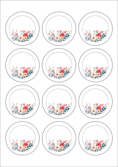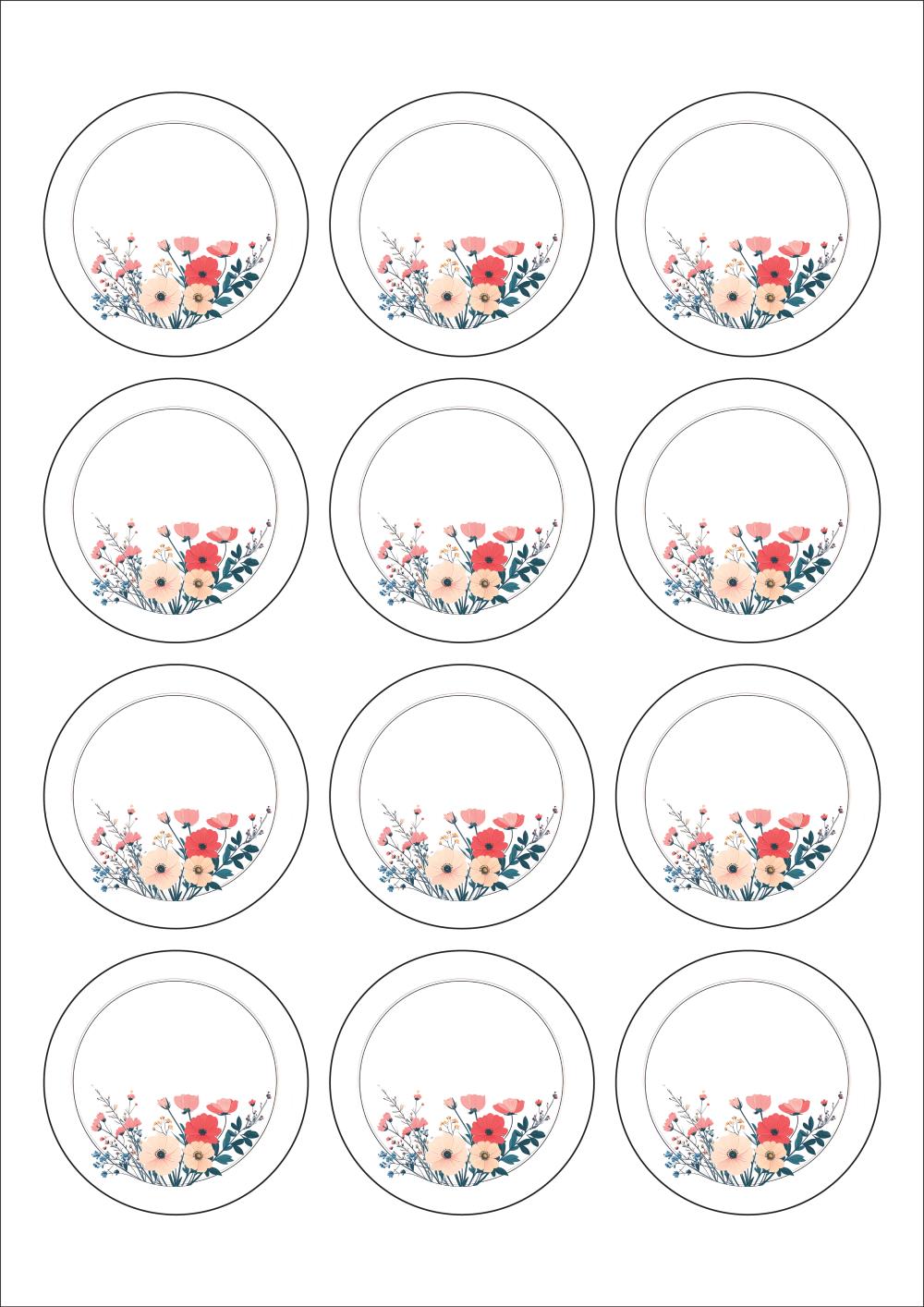 디자인된 A4 라벨지 출력용 라벨스티커, 규격코드: 634, 디자인코드: DA1361(플라워 프레임), Φ60 (mm) 원형