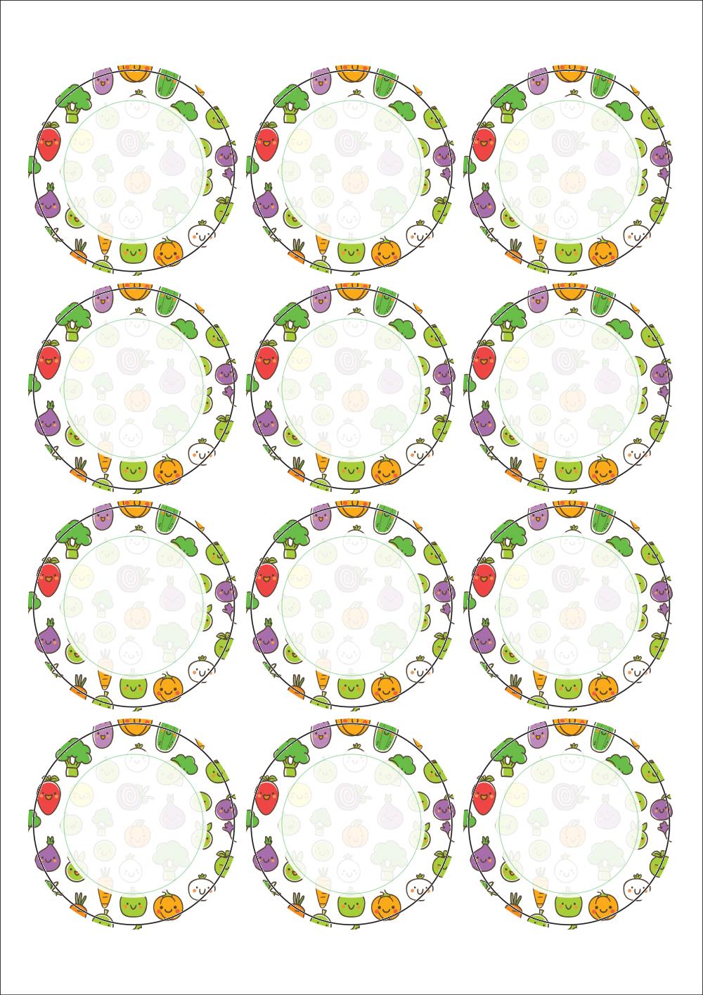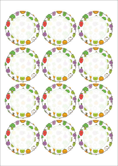 디자인된 A4 라벨지 출력용 라벨스티커, 규격코드: 634, 디자인코드: DA1377(건강한 야채 이야기), Φ60 (mm) 원형