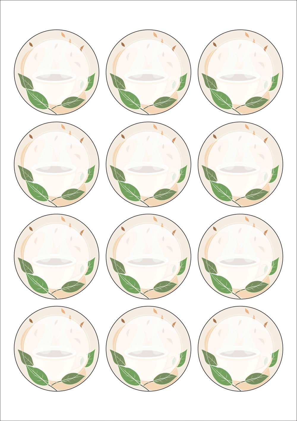 디자인된 A4 라벨지 출력용 라벨스티커, 규격코드: 634, 디자인코드: DA1415(힐링의 시간), Φ60 (mm) 원형