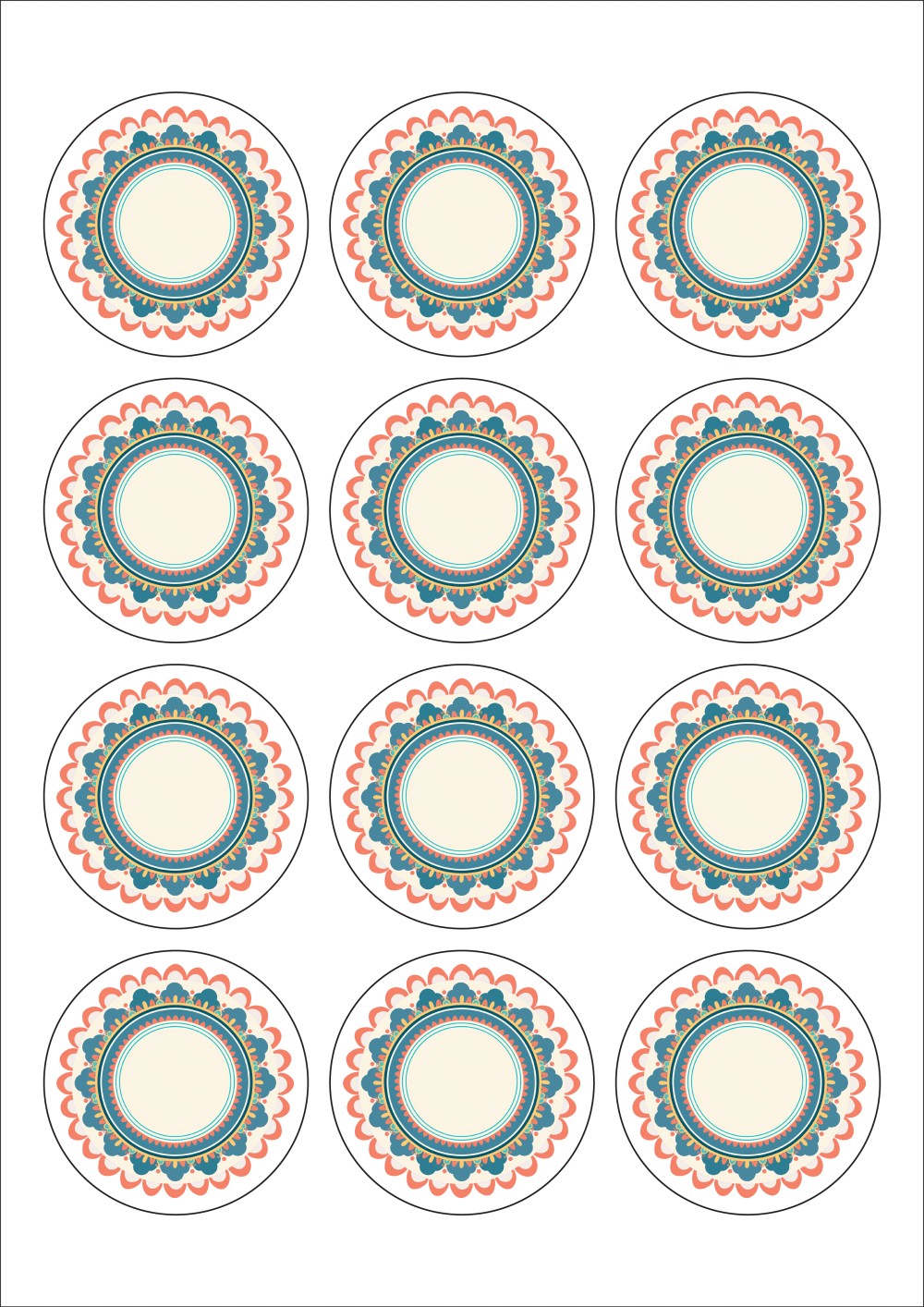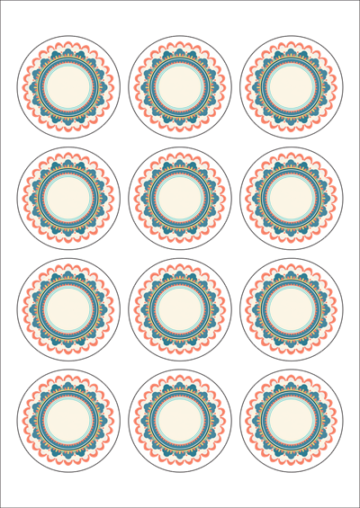 디자인된 A4 라벨지 출력용 라벨스티커, 규격코드: 634, 디자인코드: DA1418(단청 받침), Φ60 (mm) 원형