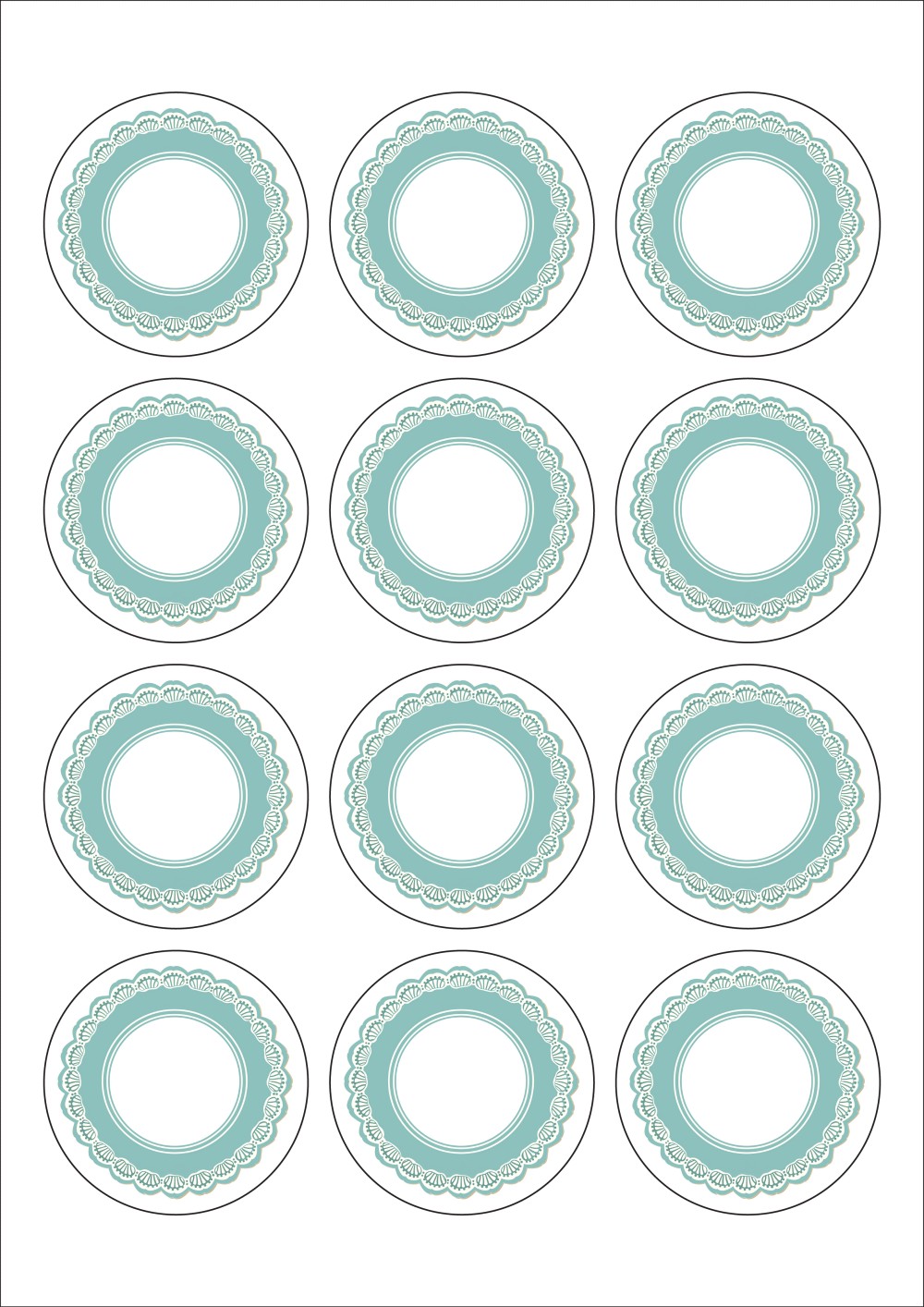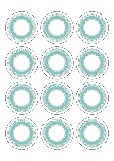 디자인된 A4 라벨지 출력용 라벨스티커, 규격코드: 634, 디자인코드: DA1419(민트레이스), Φ60 (mm) 원형
