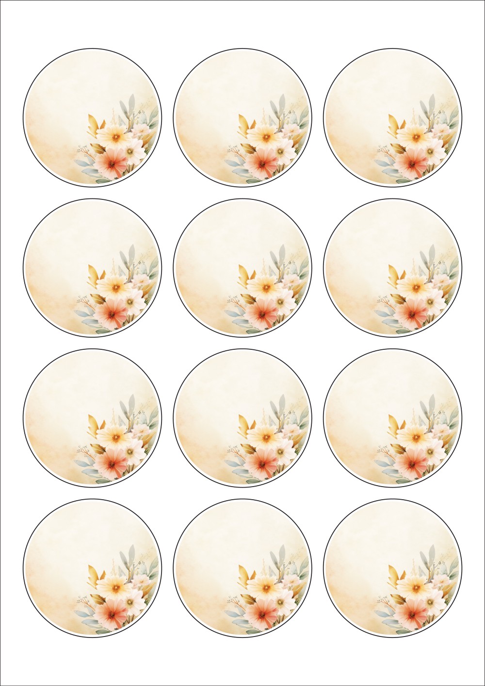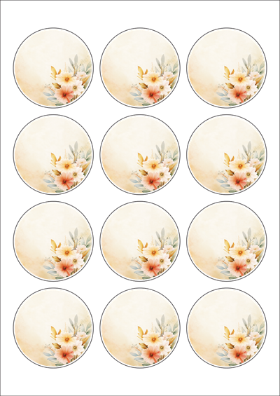 디자인된 A4 라벨지 출력용 라벨스티커, 규격코드: 634, 디자인코드: DA1423(답례품 메세지), Φ60 (mm) 원형