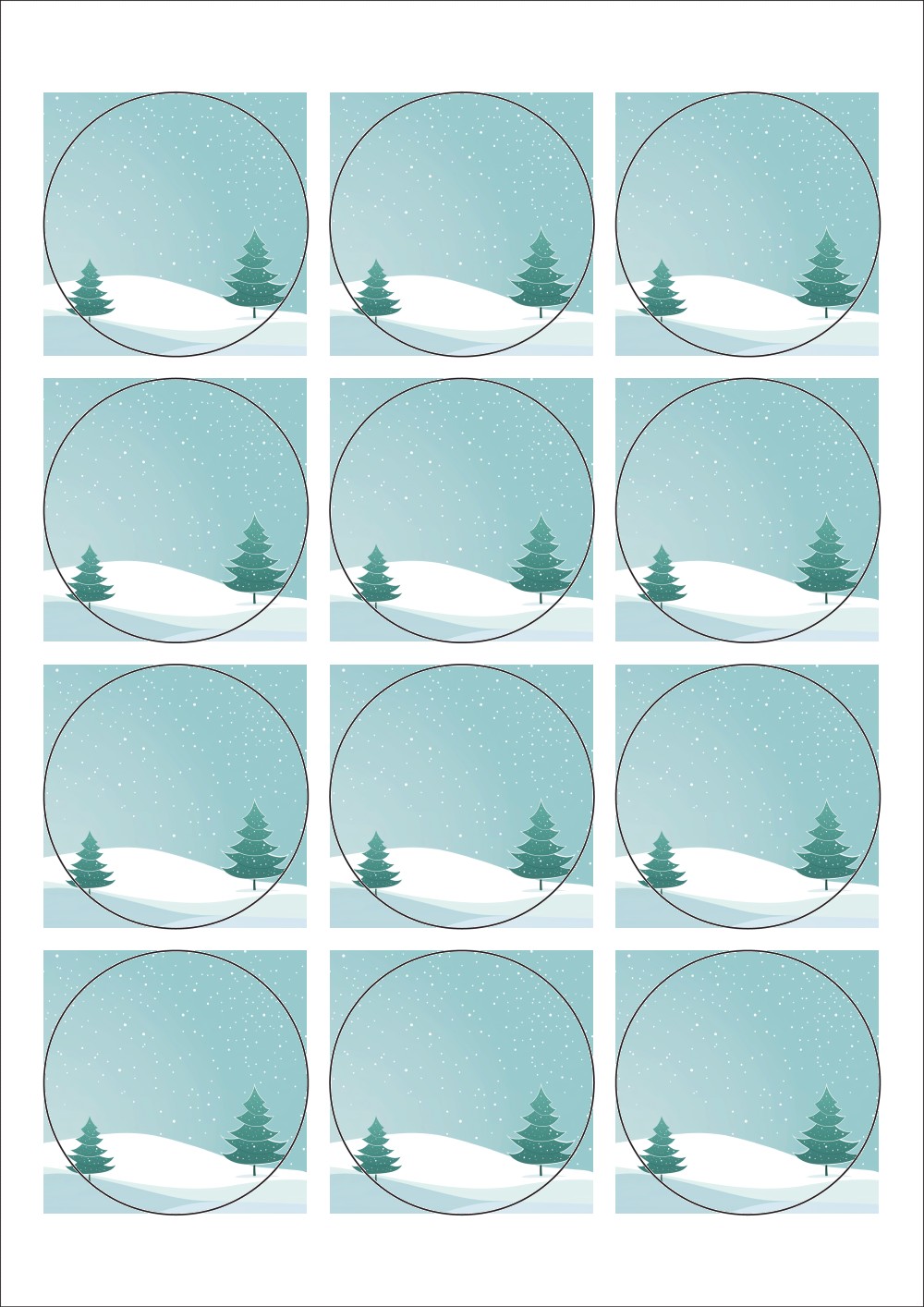 디자인된 A4 라벨지 출력용 라벨스티커, 규격코드: 634, 디자인코드: DA1500(메리크리스마스 미스터 심플), Φ60 (mm) 원형
