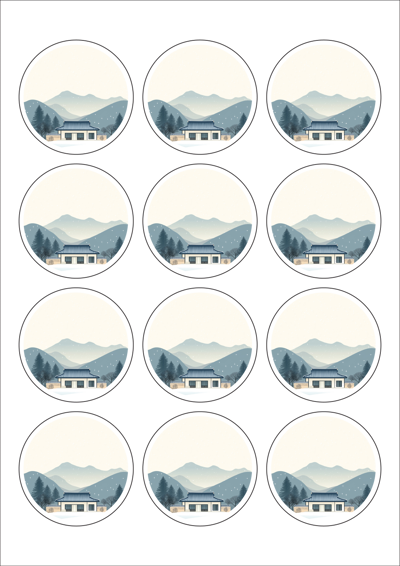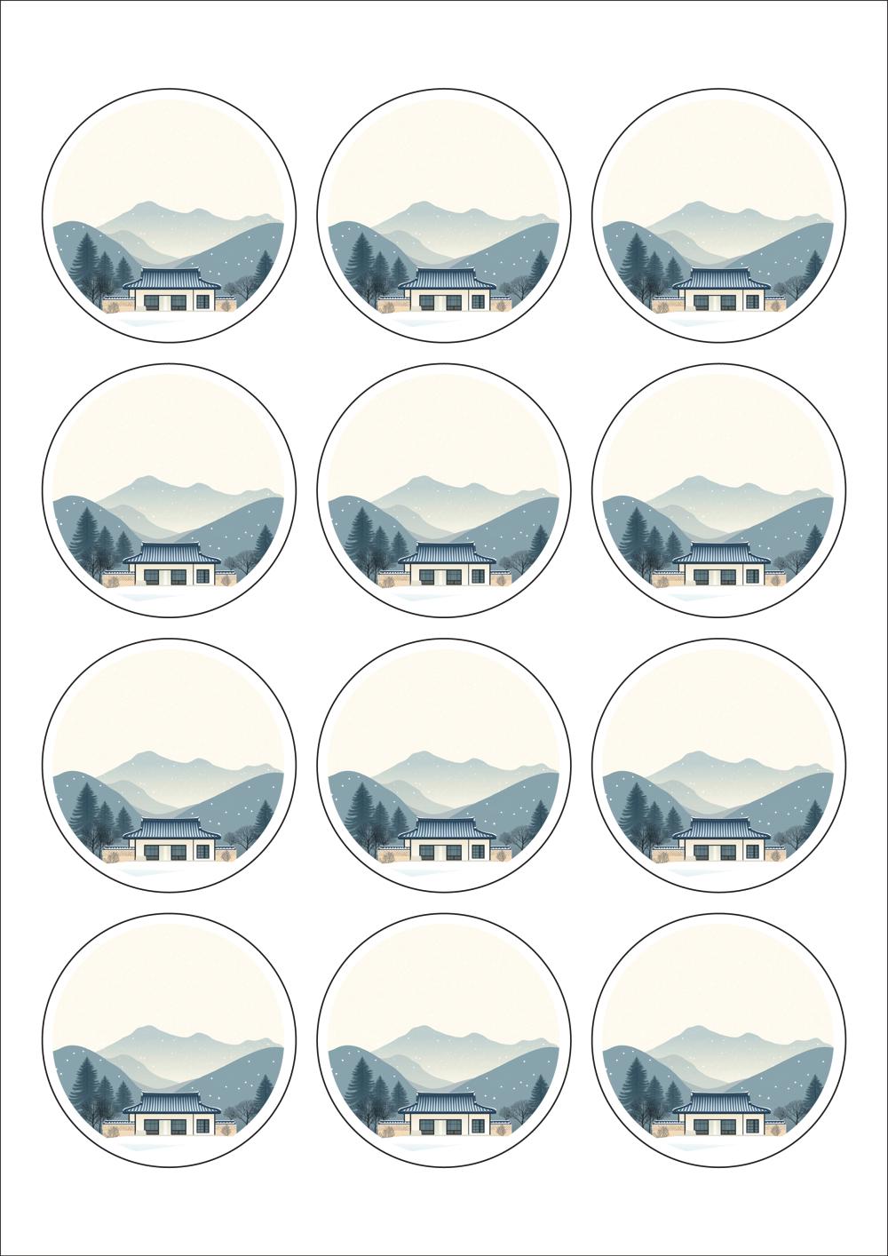 디자인된 A4 라벨지 출력용 라벨스티커, 규격코드: 634, 디자인코드: DA1581(설날의 감사의 인사), Φ60 (mm) 원형