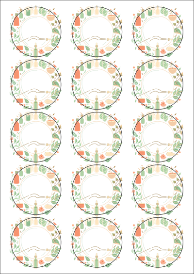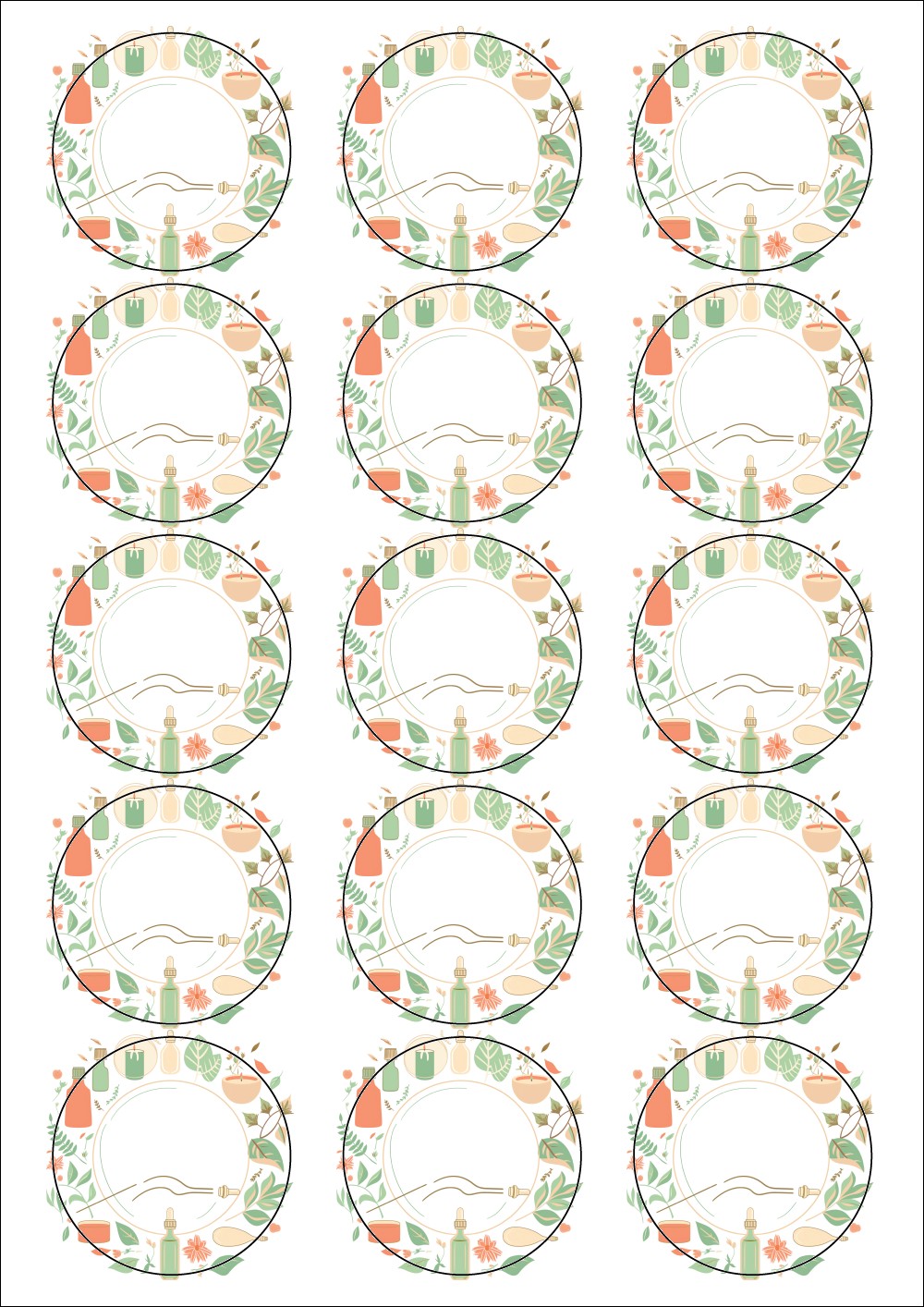 디자인된 A4 라벨지 출력용 라벨스티커, 규격코드: 635, 디자인코드: DA1407(아로마 프레임), Φ54 (mm) 원형