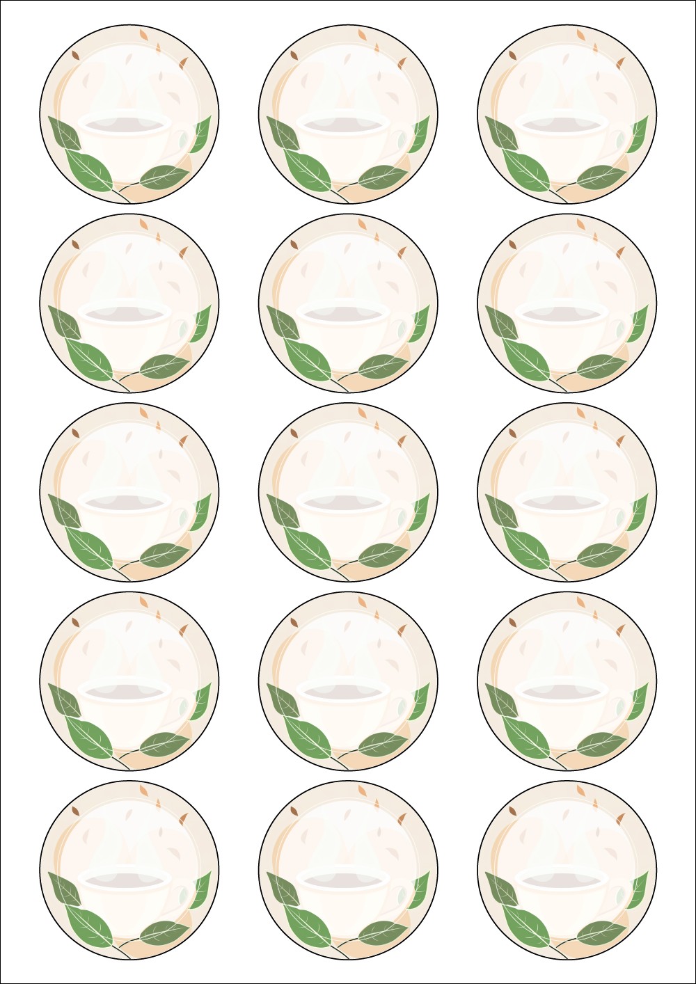 디자인된 A4 라벨지 출력용 라벨스티커, 규격코드: 635, 디자인코드: DA1415(힐링의 시간), Φ54 (mm) 원형