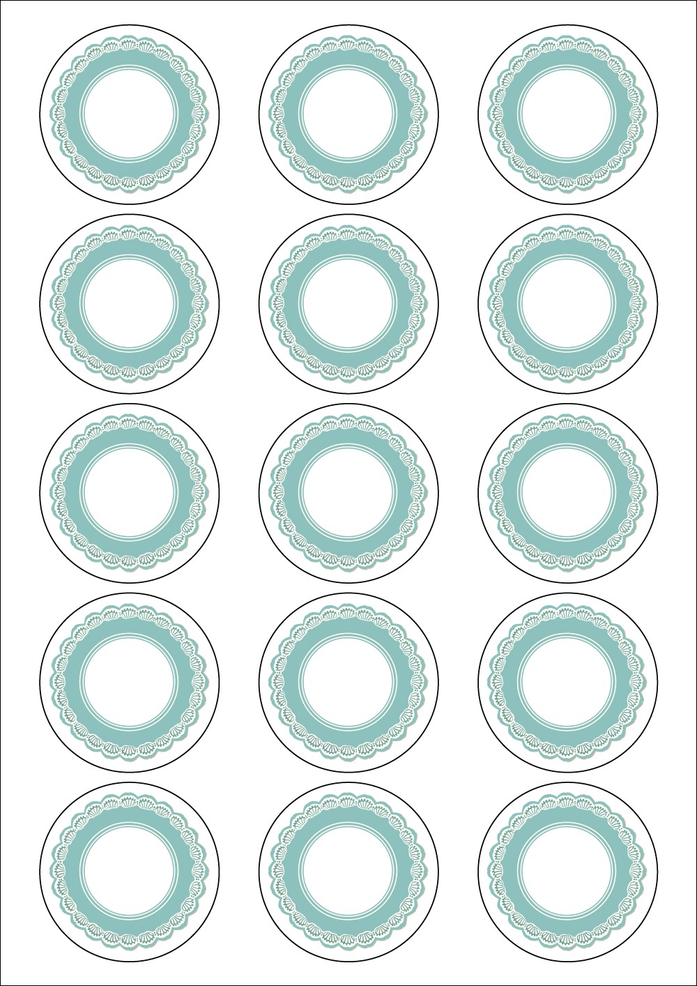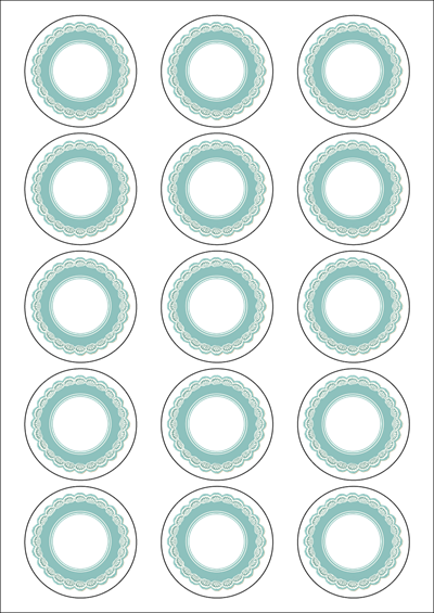 디자인된 A4 라벨지 출력용 라벨스티커, 규격코드: 635, 디자인코드: DA1419(민트레이스), Φ54 (mm) 원형