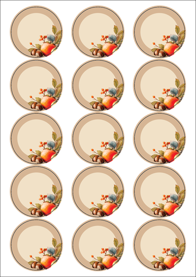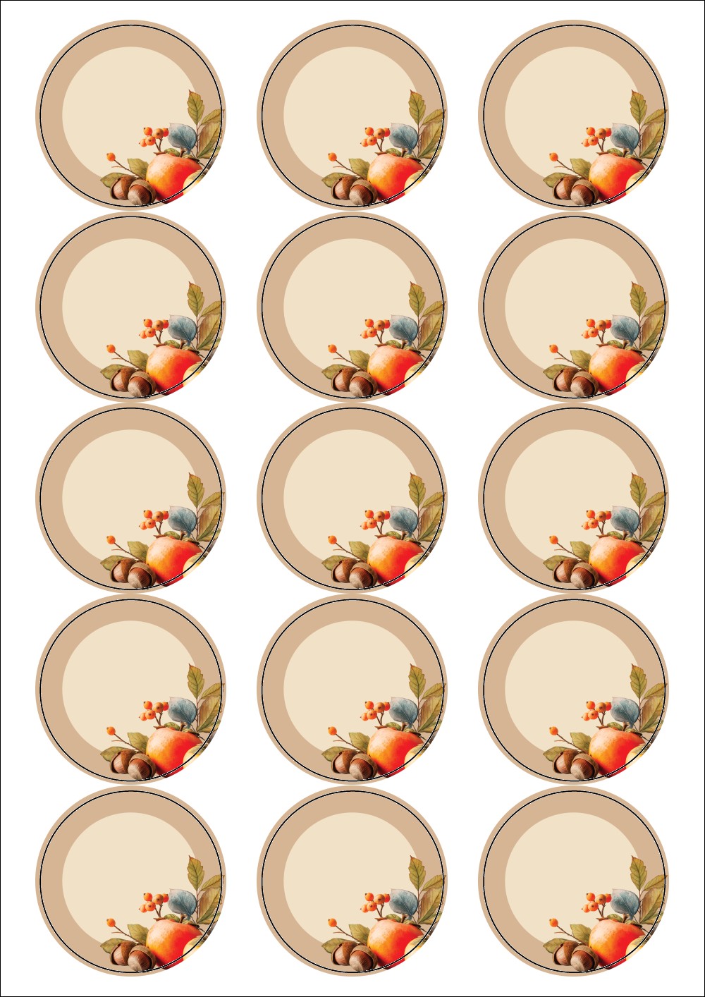 디자인된 A4 라벨지 출력용 라벨스티커, 규격코드: 635, 디자인코드: DA1452(수확의 계절, 감사의 마음을 담아서), Φ54 (mm) 원형