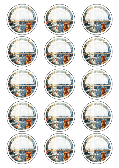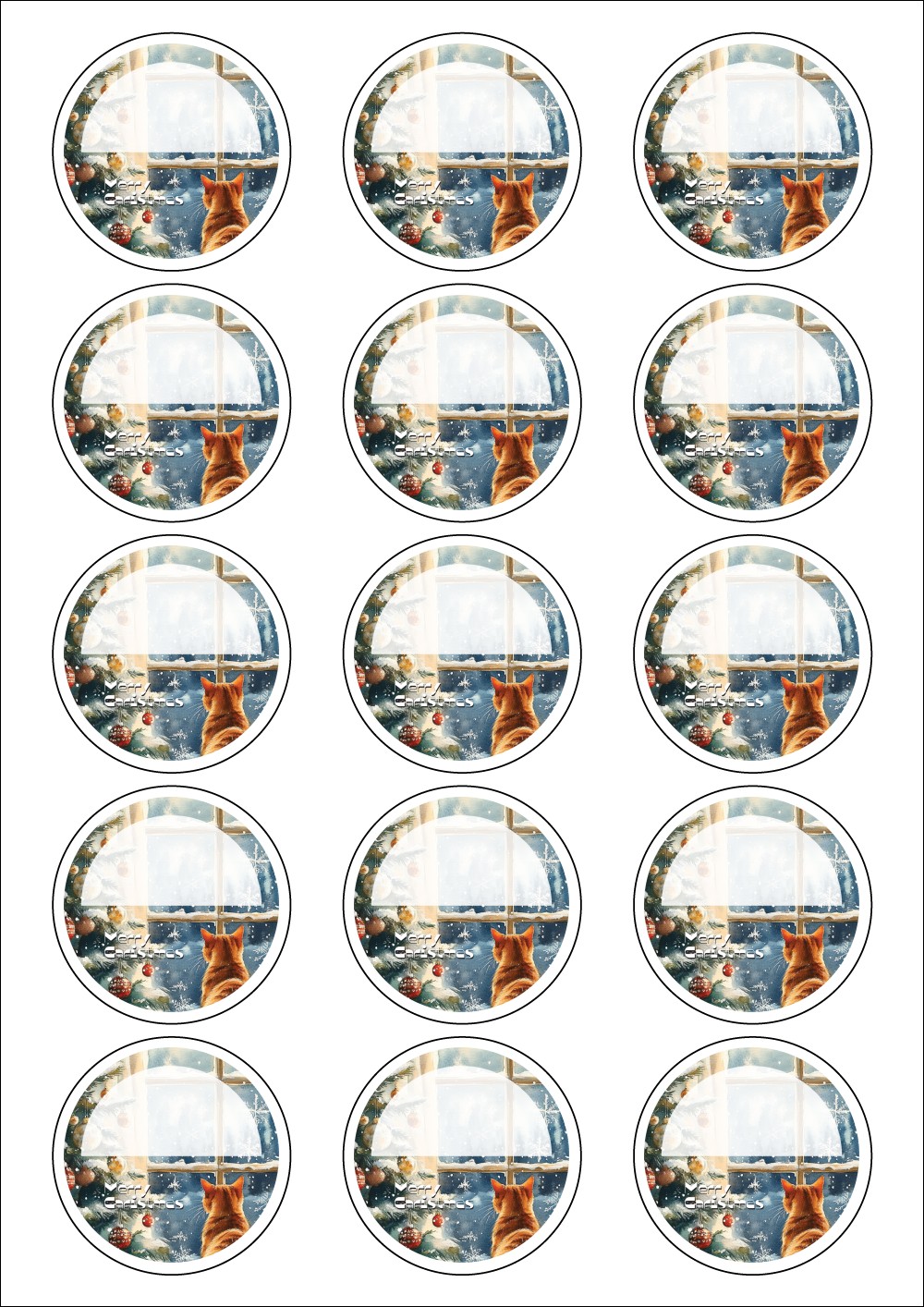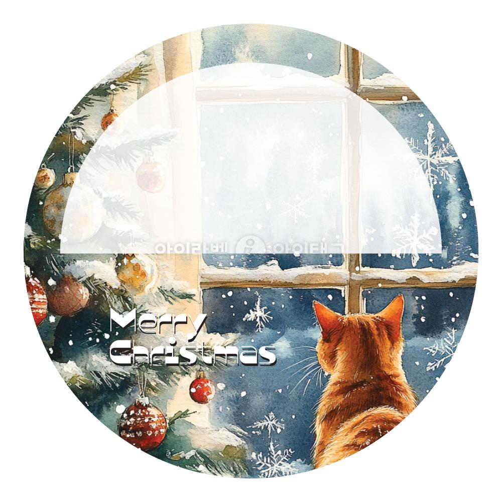 디자인된 A4 라벨지 출력용 라벨스티커, 규격코드: 635, 디자인코드: DA1496(메리크리스마스냥!), Φ54 (mm) 원형