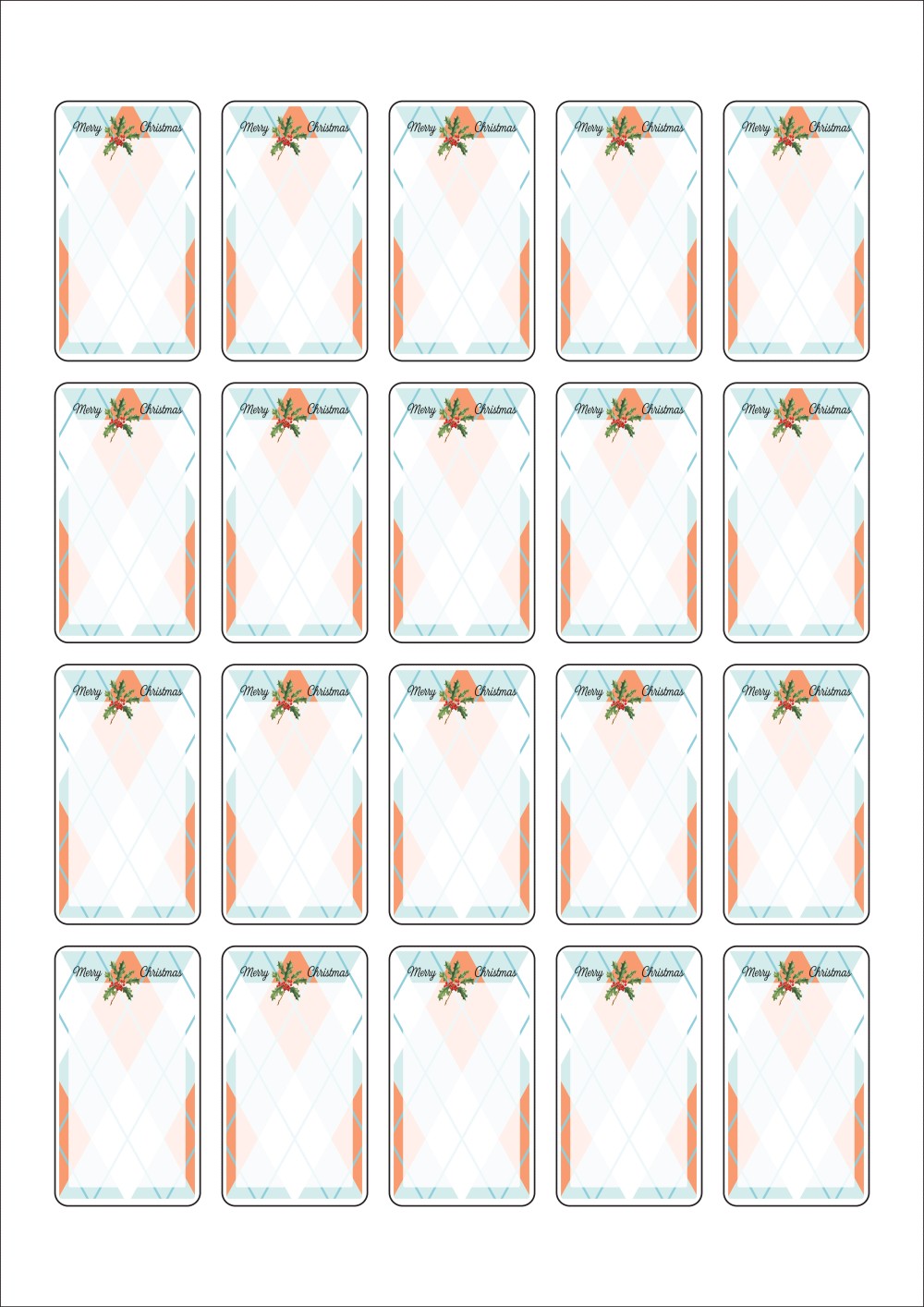 디자인된 A4 라벨지 출력용 라벨스티커, 규격코드: 654, 디자인코드: DA1453(메리크리스마스 . 사랑의 메세지), 33 x 59 (mm)